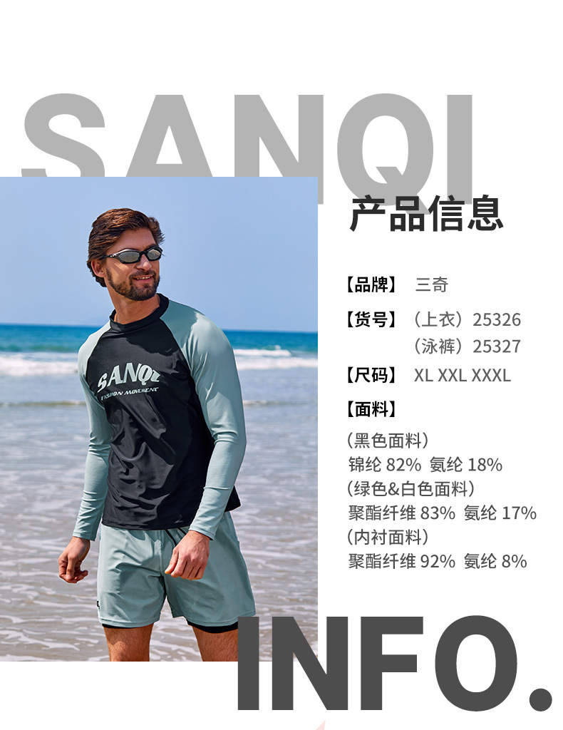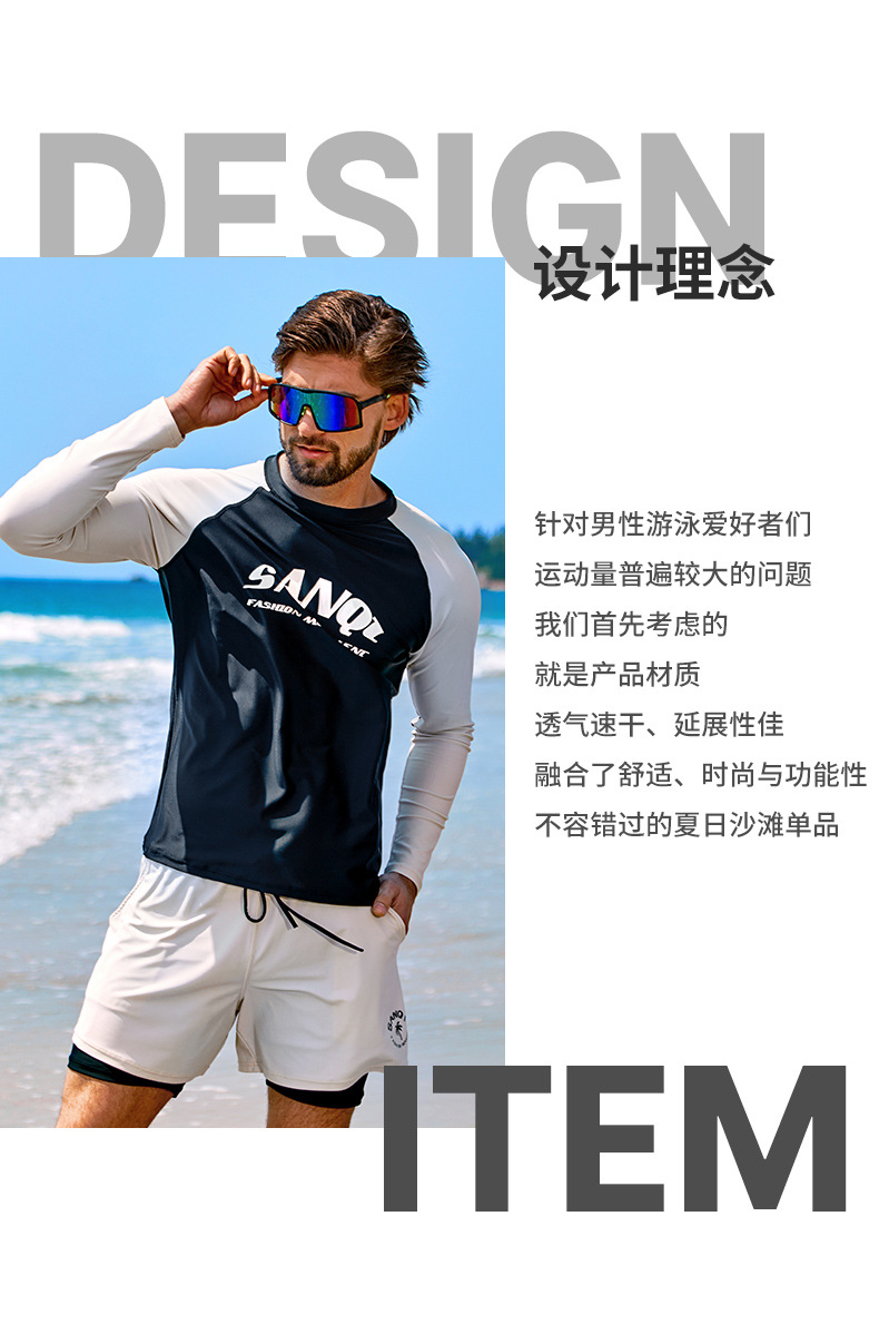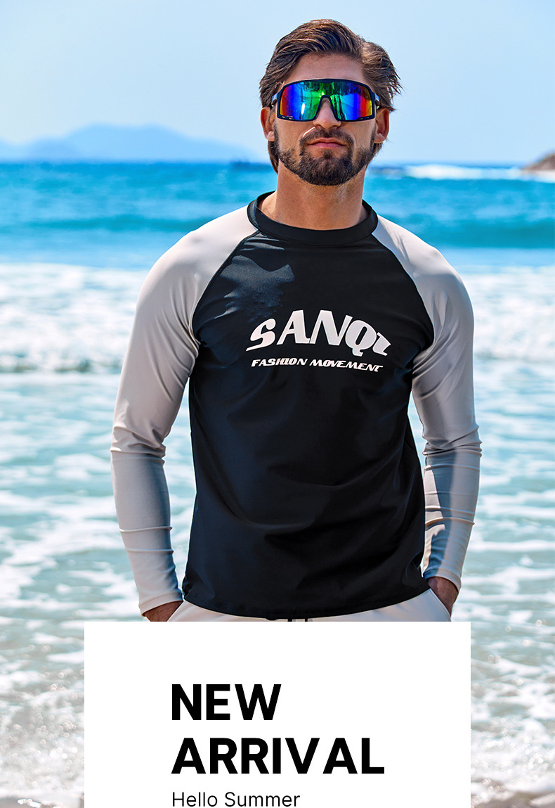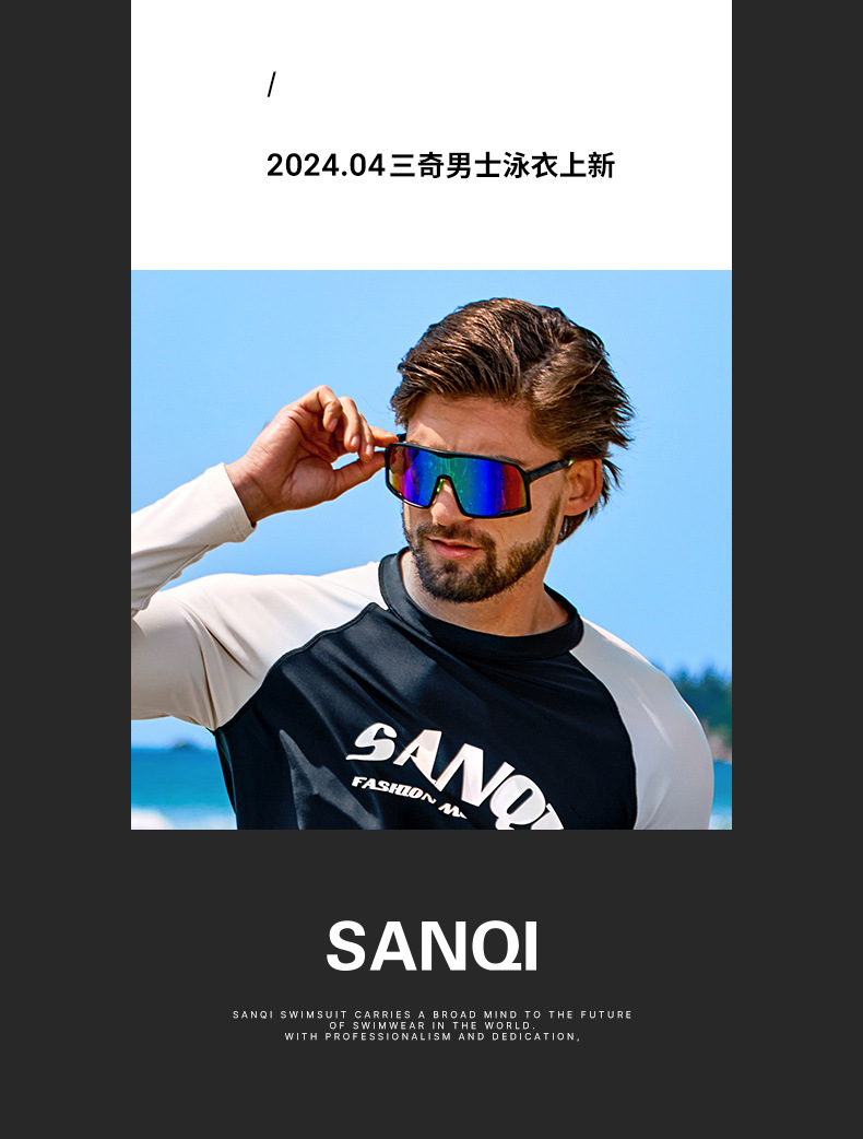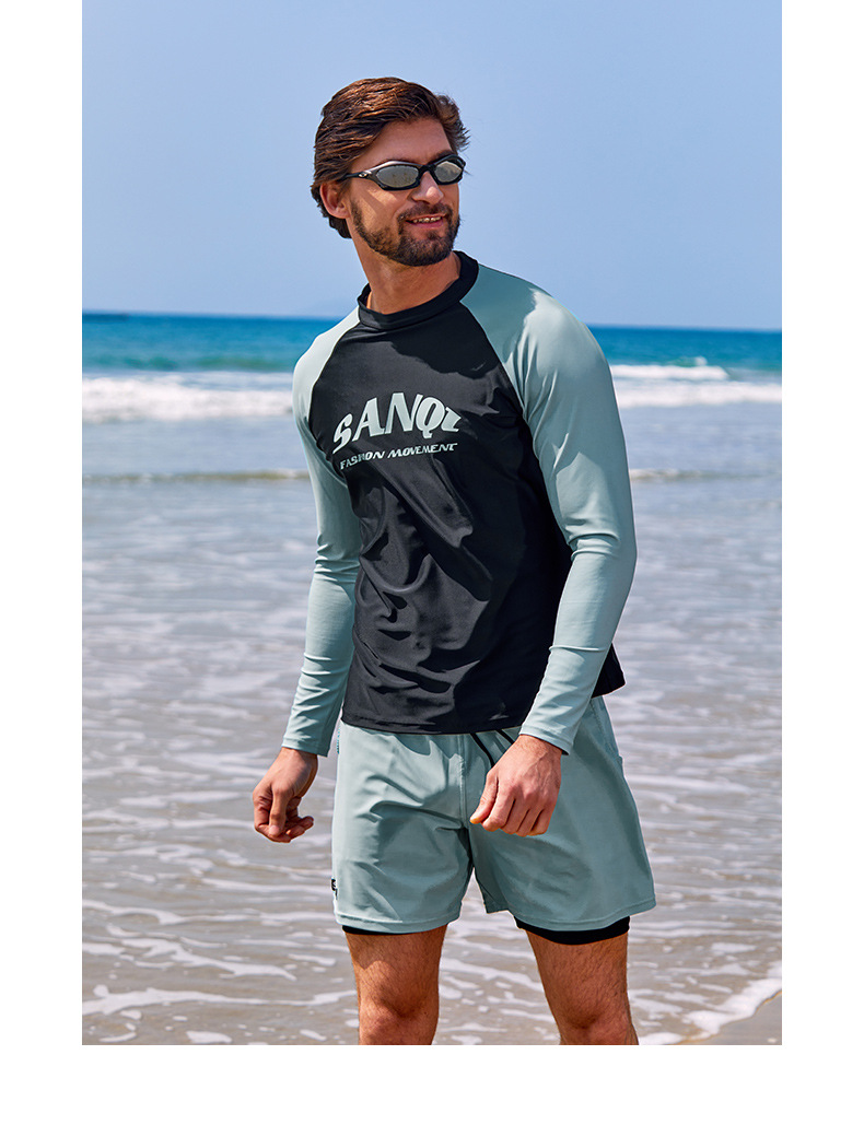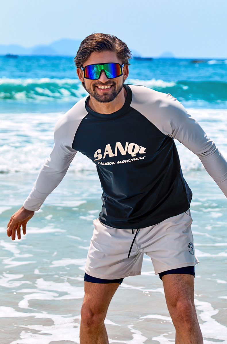 Sanqi 스플릿 수영복 남성 2024 새 세트 긴 소매 전문 썬 보호 빠른 건조 남성 서핑 수트