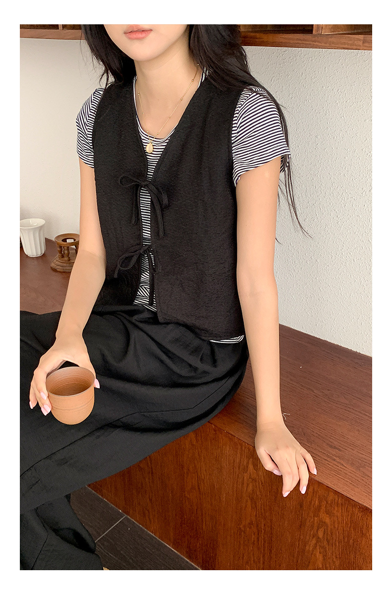 이순신 셔츠 블랙 선물 디자인 센스 짧은 한국 스타일 조끼 여성의 간단한 단색 웨이스트 코트 우아한 카디건스토어 가기
