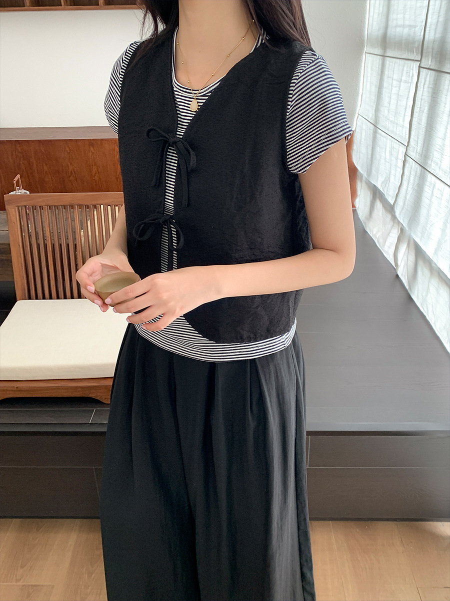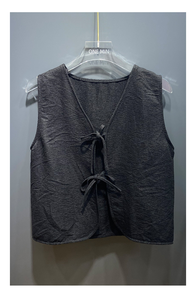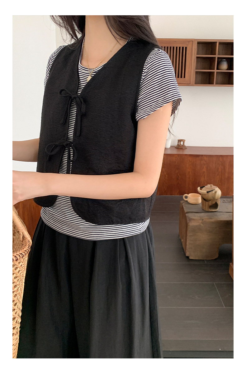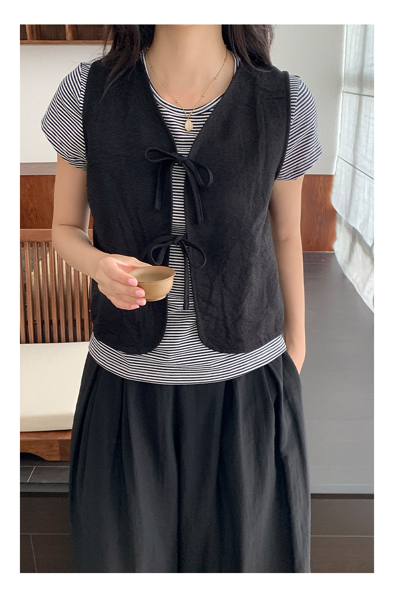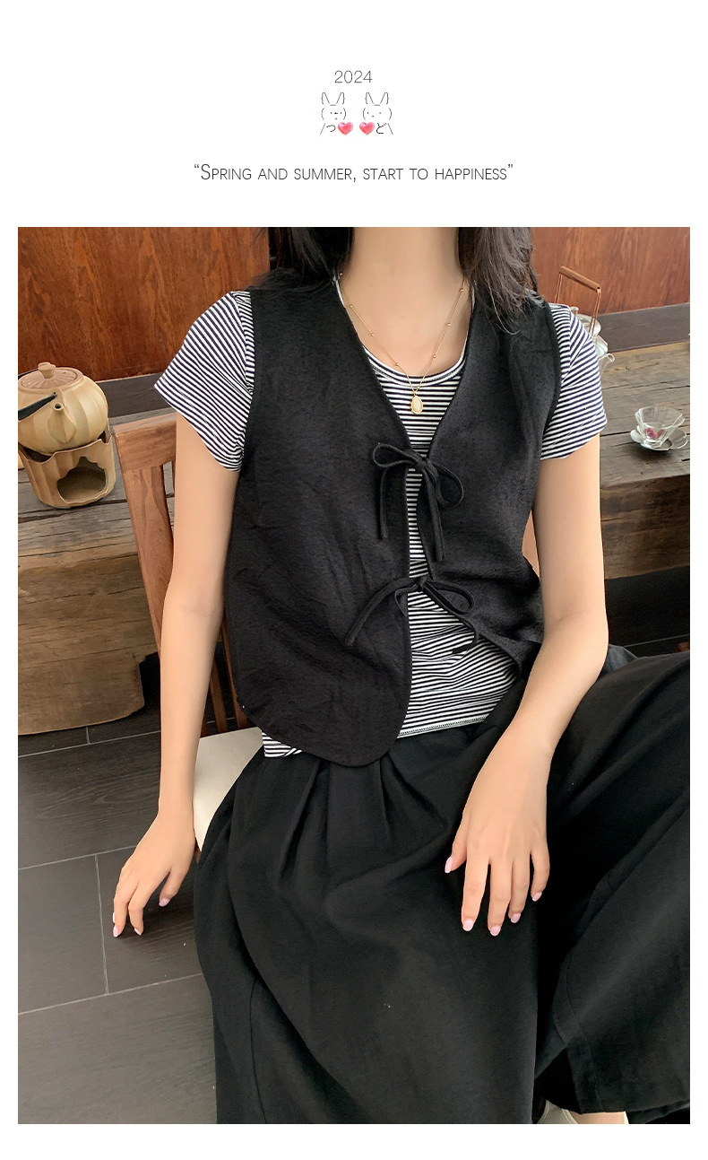 이순신 셔츠 블랙 선물 디자인 센스 짧은 한국 스타일 조끼 여성의 간단한 단색 웨이스트 코트 우아한 카디건