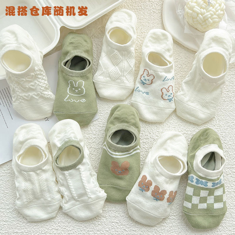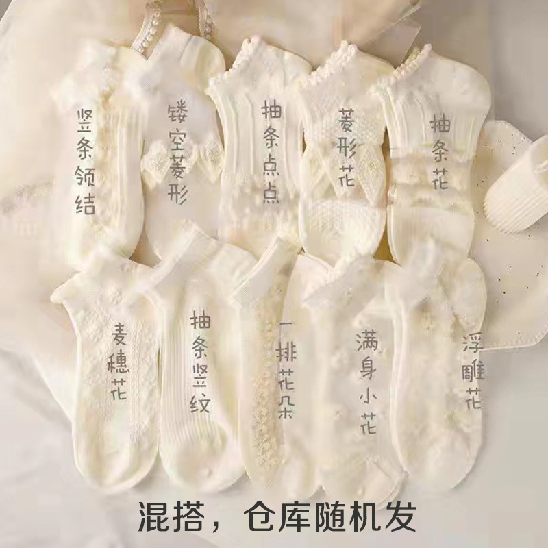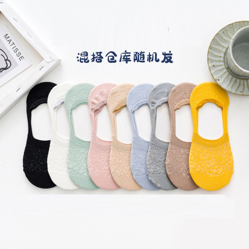 Zhuji 양말 솔리드 컬러 양말 여성 도매 얕은 입 메쉬 보이지 않는 양말 떨어지지 않는 봄과 여름 레이스 보트 양말스토어 가기