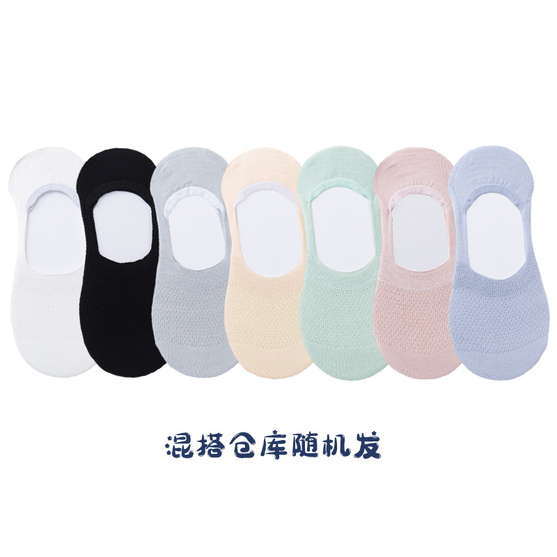 Zhuji 양말 솔리드 컬러 양말 여성 도매 얕은 입 메쉬 보이지 않는 양말 떨어지지 않는 봄과 여름 레이스 보트 양말