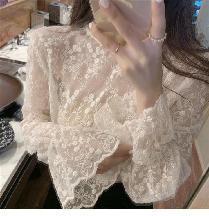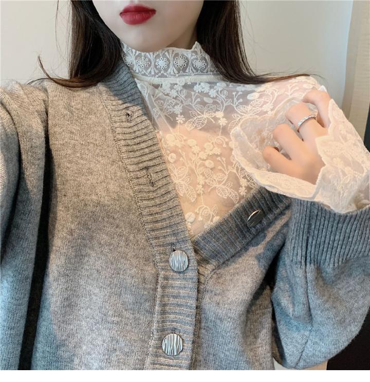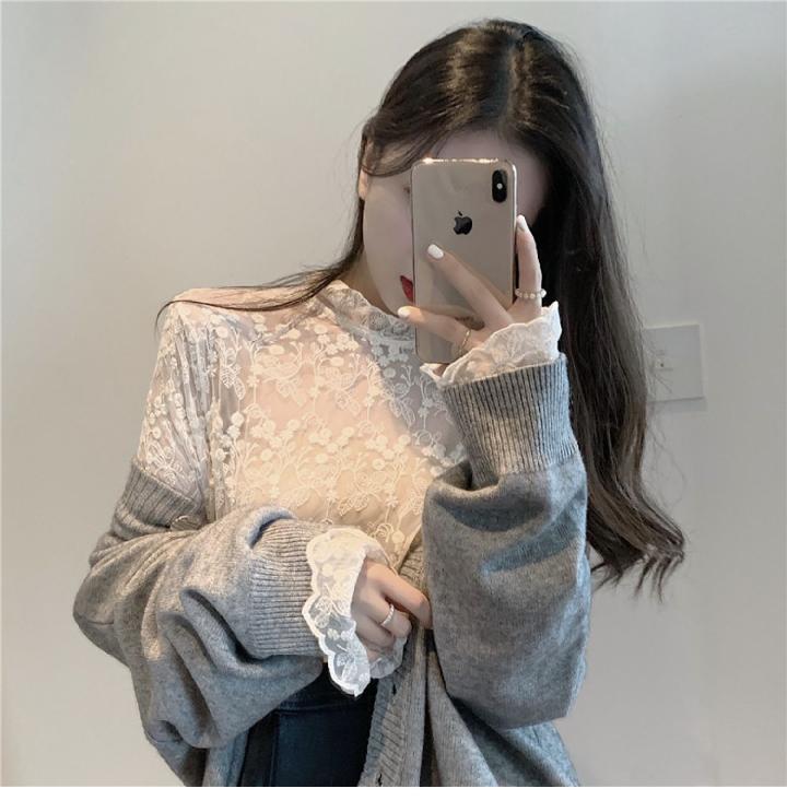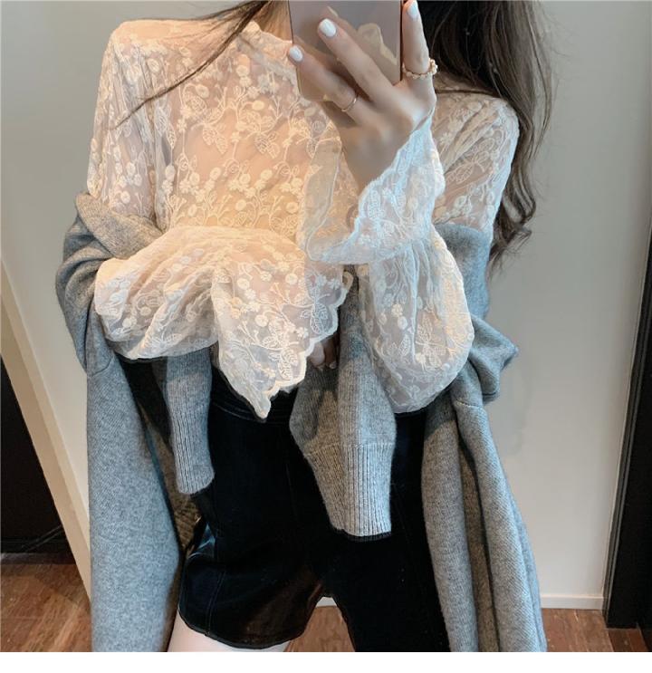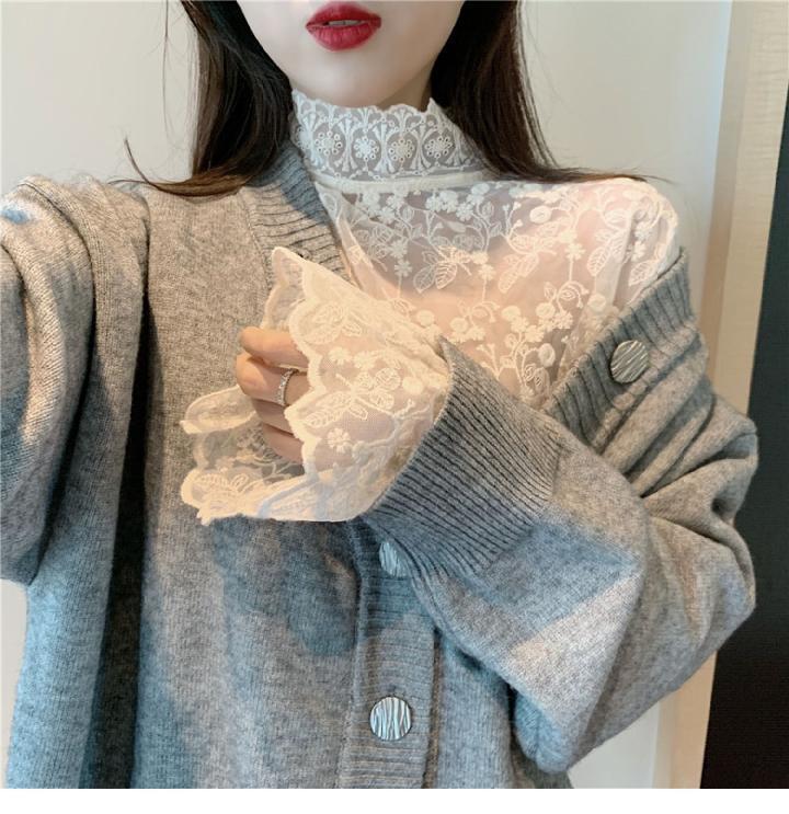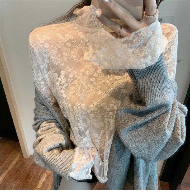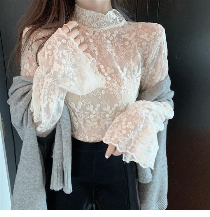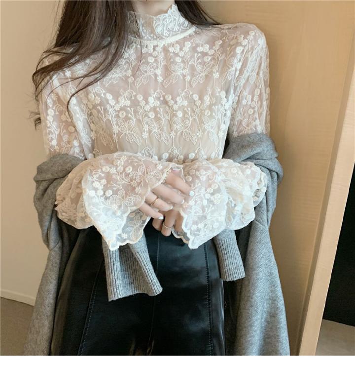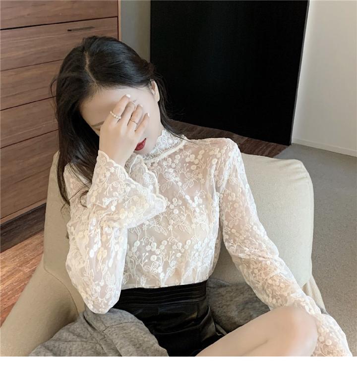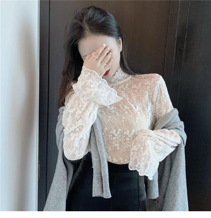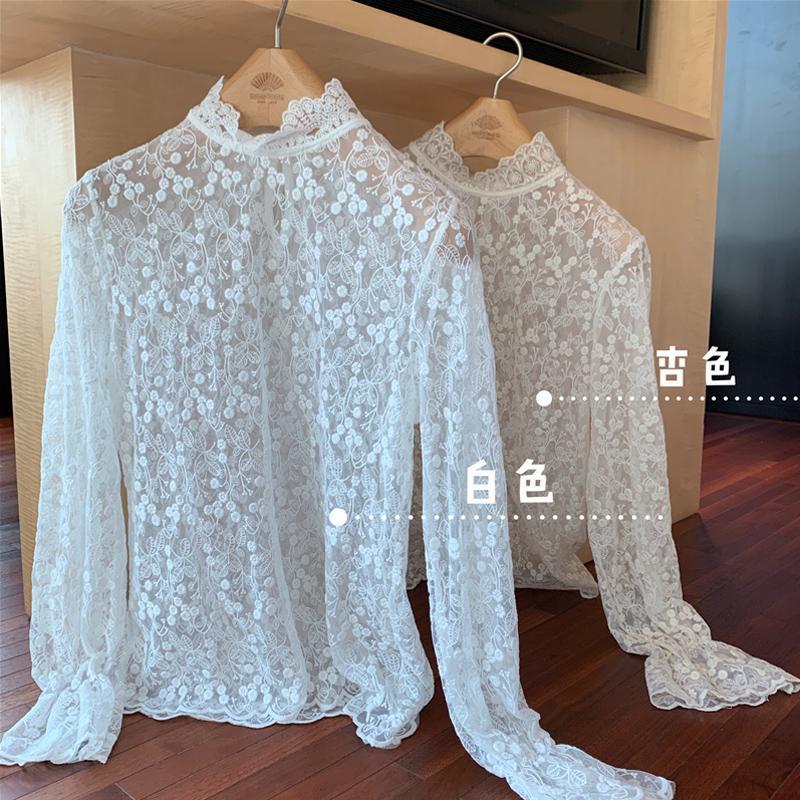 가을과 겨울 새로운 한국 스타일 유행 우아한 통통한 메쉬 셔츠 플러스 사이즈 기본 셔츠 최고 여성스토어 가기