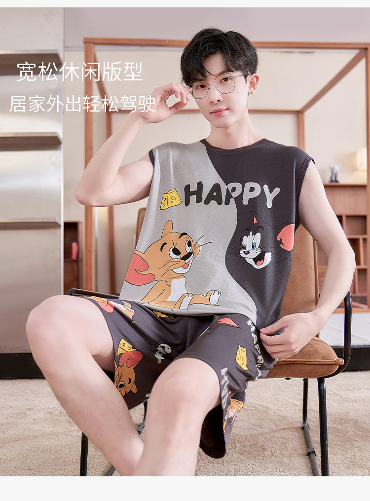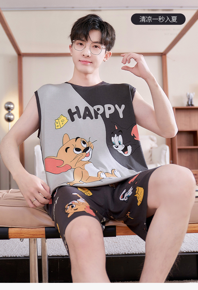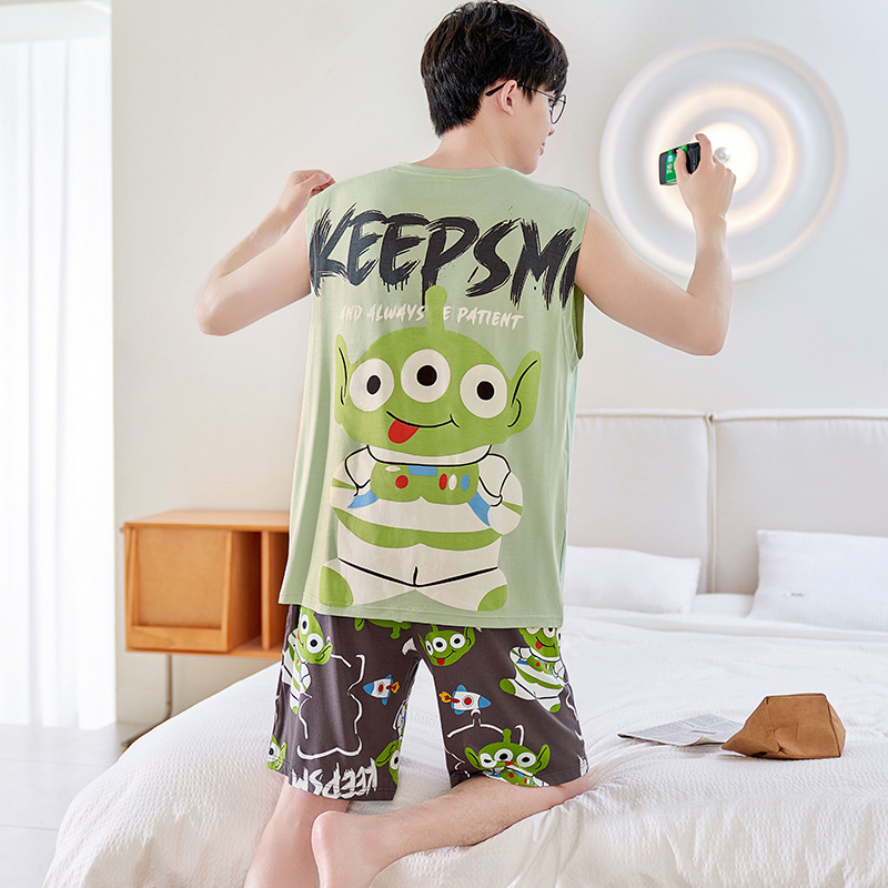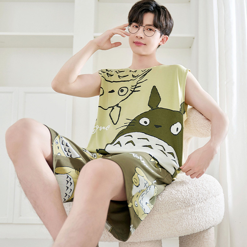 2024 새로운 만화 조끼 파자마 남자 여름 모달 민소매 플러스 사이즈 외부 의류 세트스토어 가기