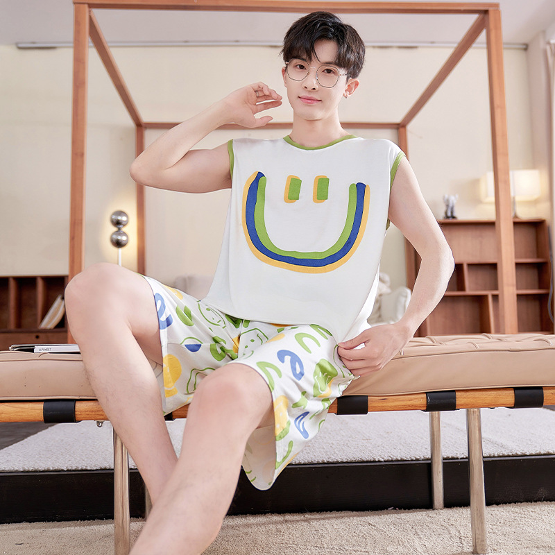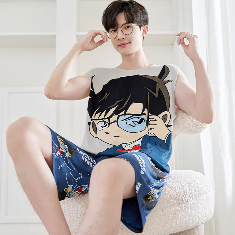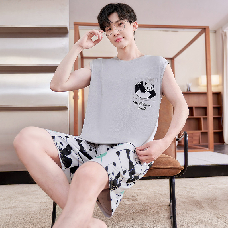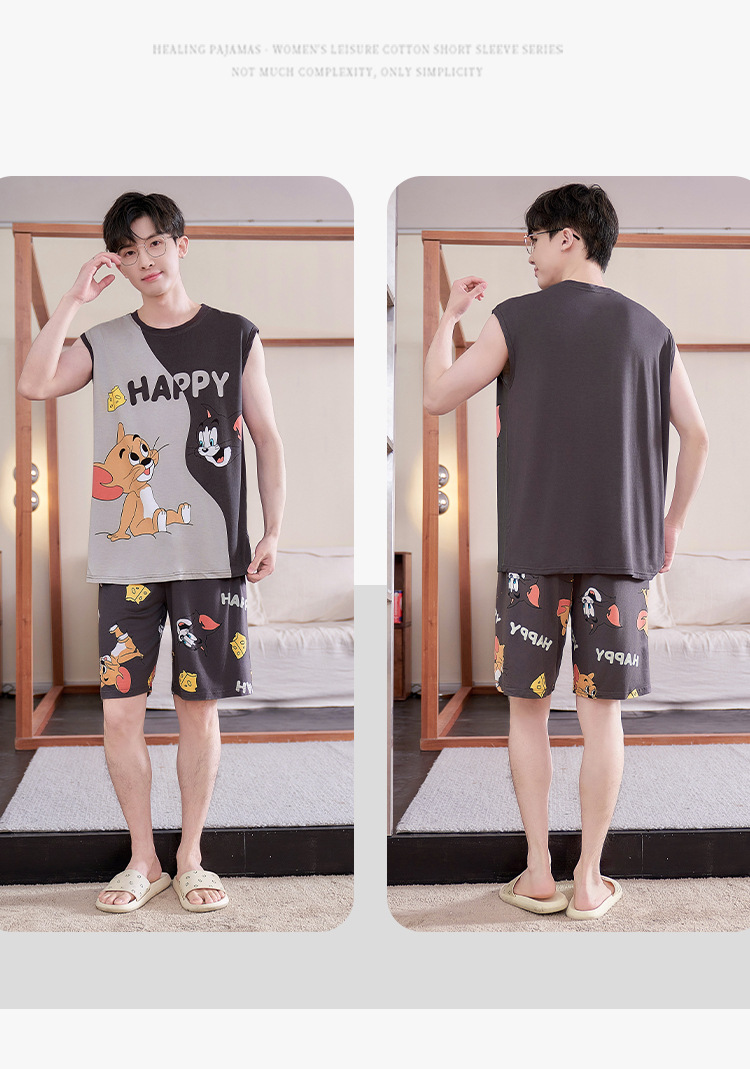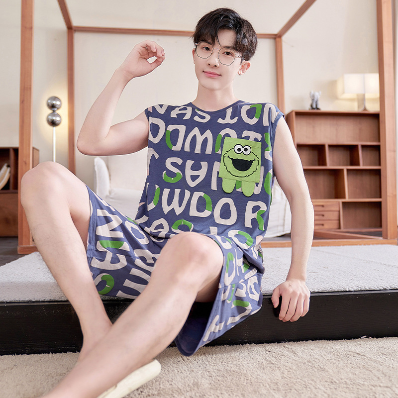 2024 새로운 만화 조끼 파자마 남자 여름 모달 민소매 플러스 사이즈 외부 의류 세트스토어 가기