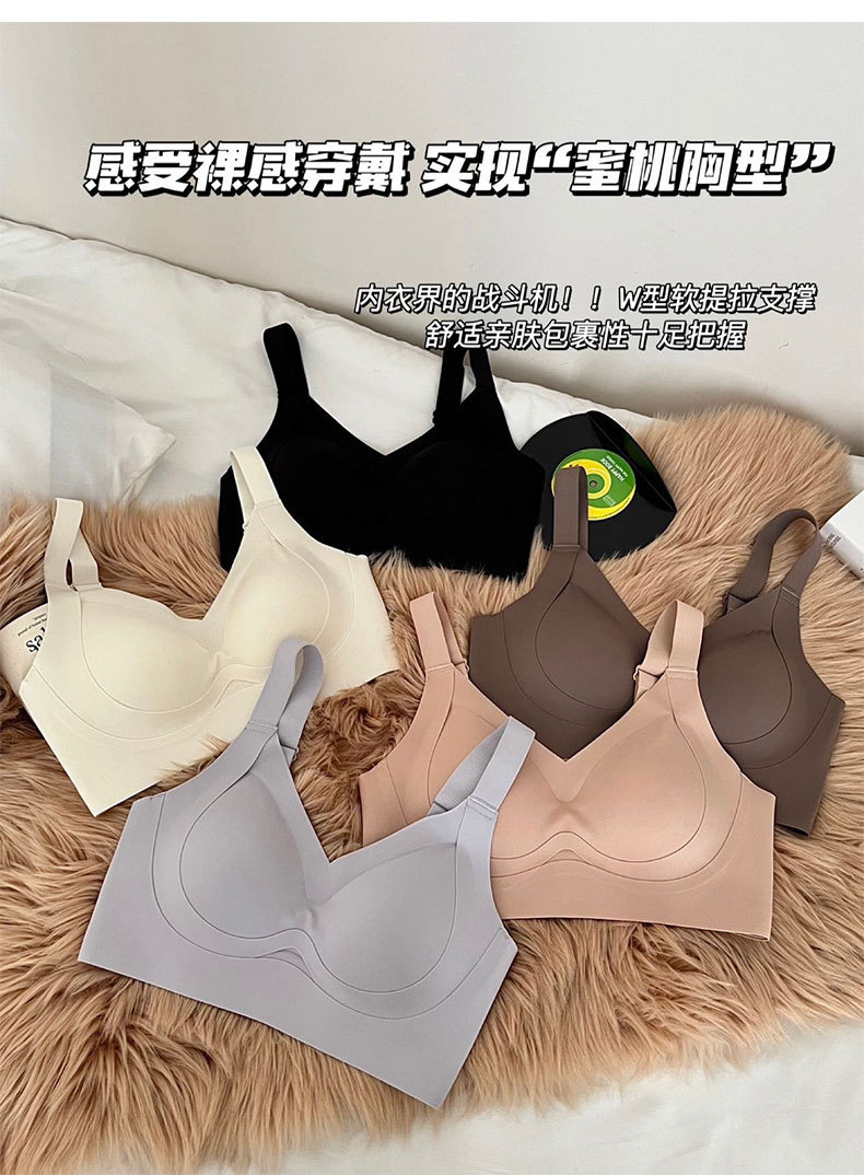 알몸 원피스 원활한 부드러운 리프팅 W 형 가슴 지원 부드러운 지원 편안한 고정 원피스 컵 속옷 여성용 브래지어