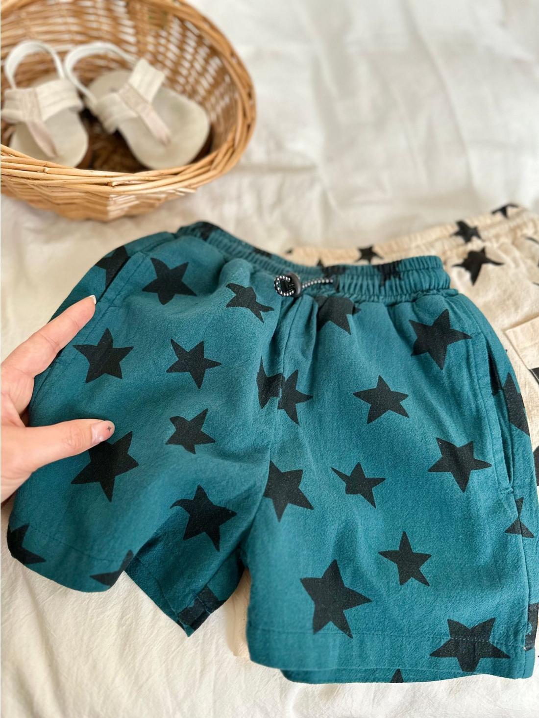 • 공작 블루 스타 반바지 (허리 로프 버클 없음)