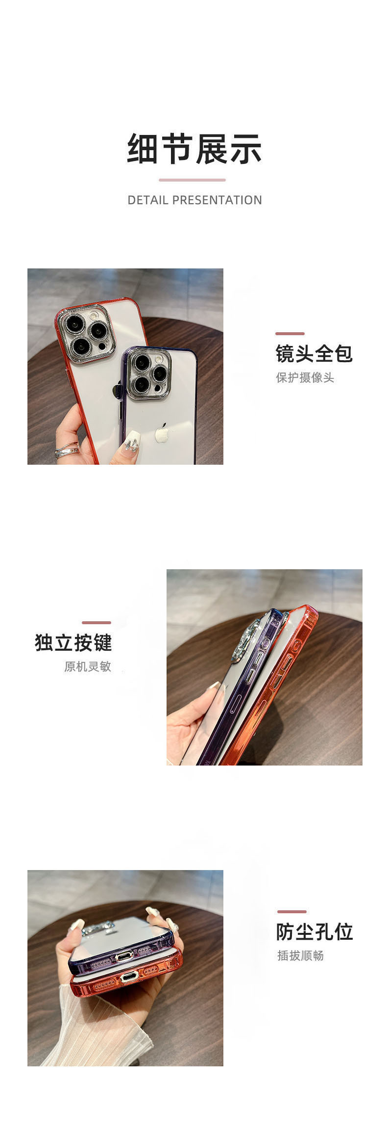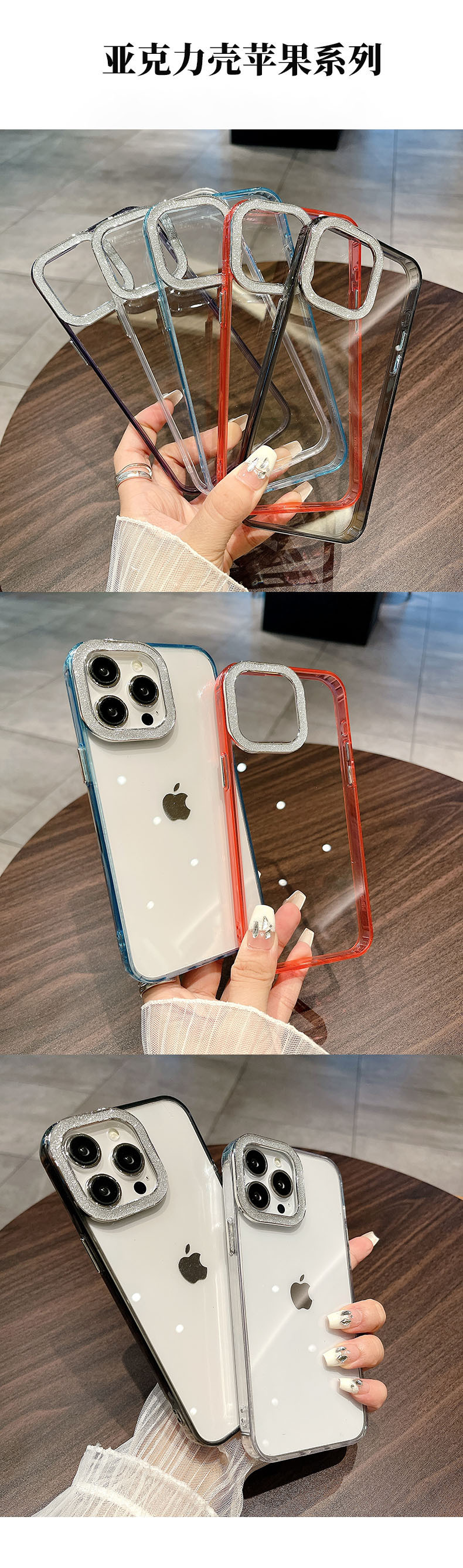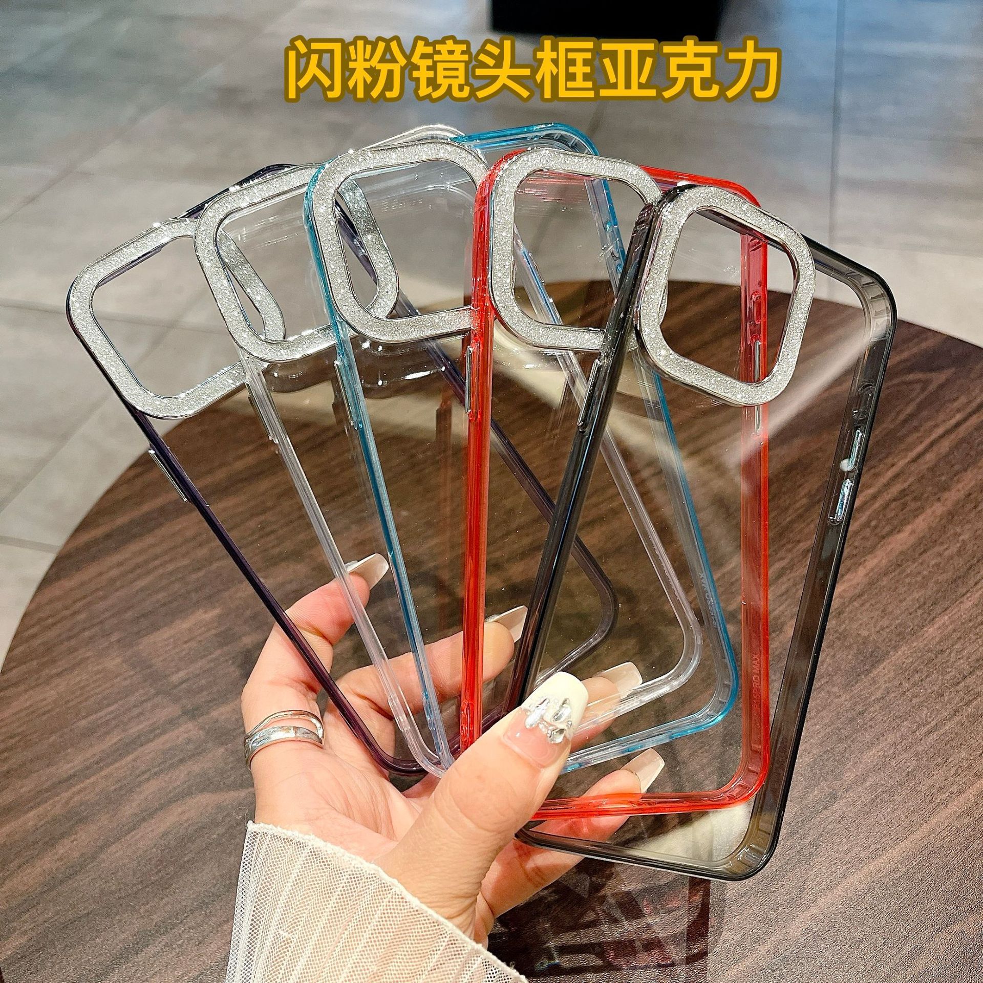 Iphone15promax 새로운 반짝이 아크릴 전화 케이스 애플 16 금속 렌즈 링 보호 커버