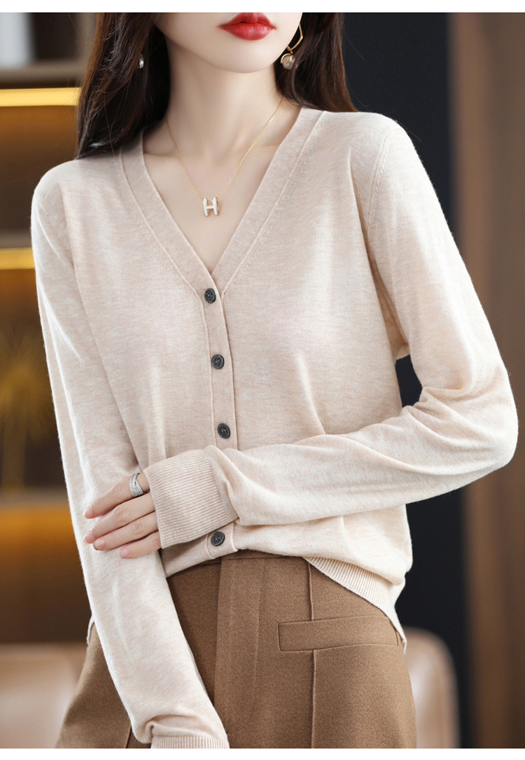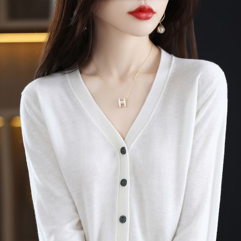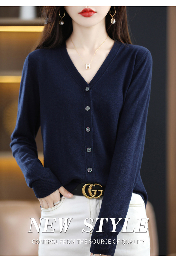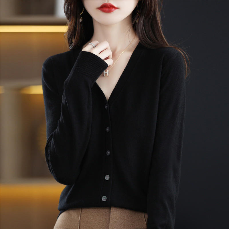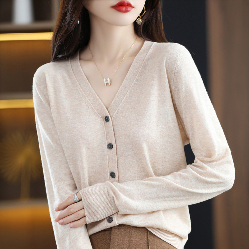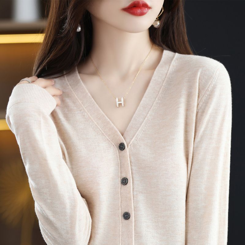 티베트 푸른 봄과 가을 양모 카디건 얇은 여성 프랑스 고급 칼라 느슨한 니트웨어 긴 소매 코트 탑