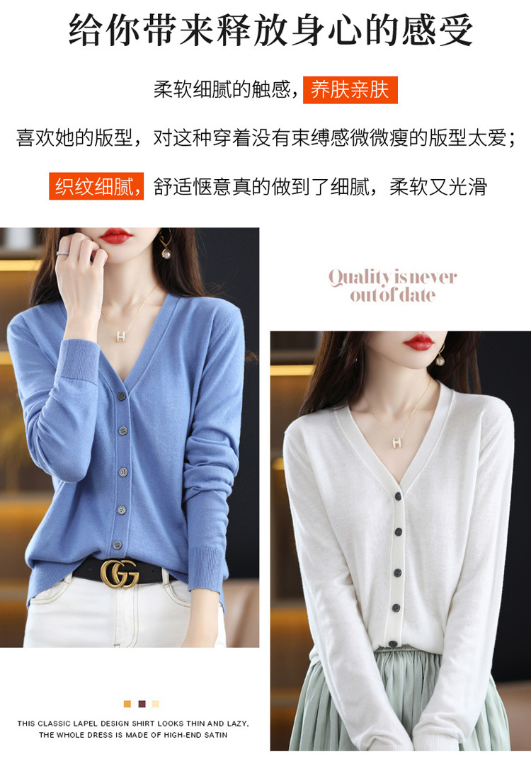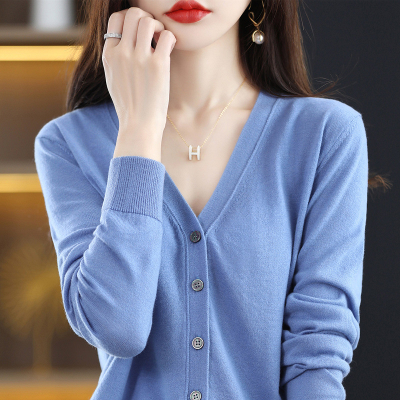 티베트 푸른 봄과 가을 양모 카디건 얇은 여성 프랑스 고급 칼라 느슨한 니트웨어 긴 소매 코트 탑스토어 가기