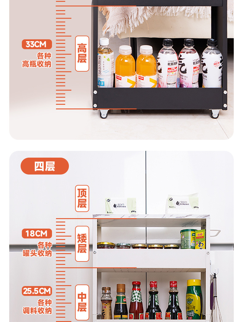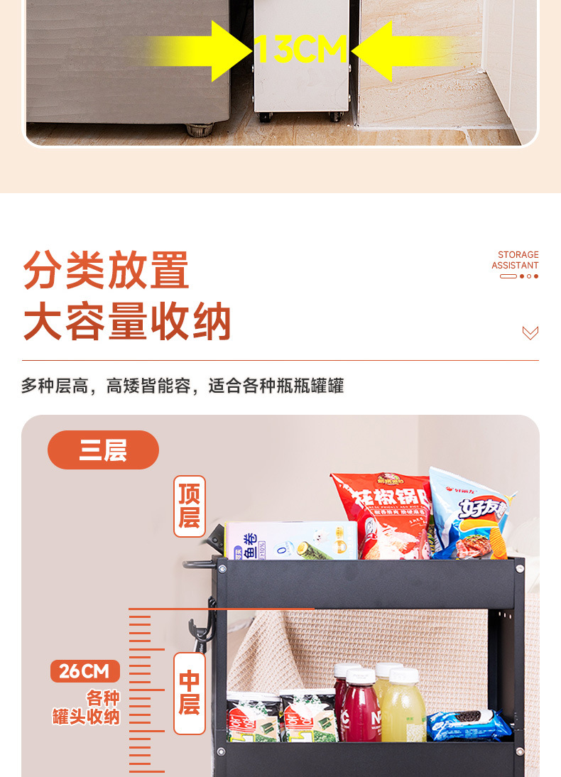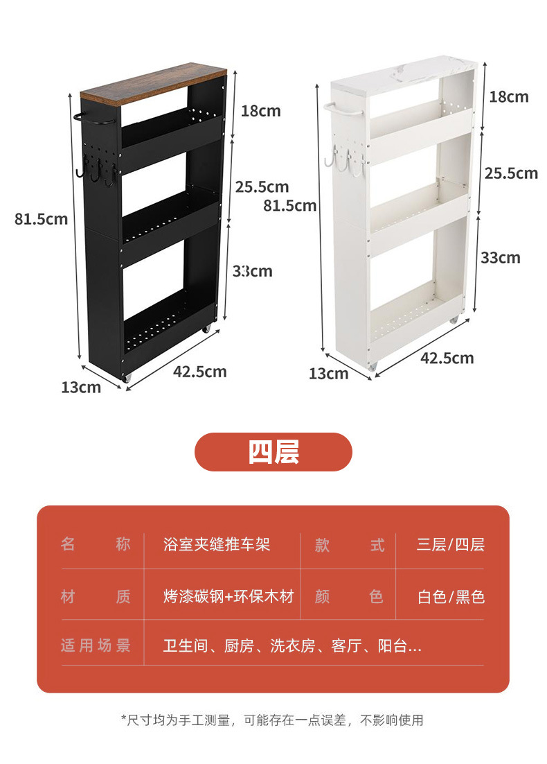 13cm 주방 모바일 갭 저장 캐비닛 욕실 냉장고 갭 저장 랙 이동식 냉장고 측면 캐비닛