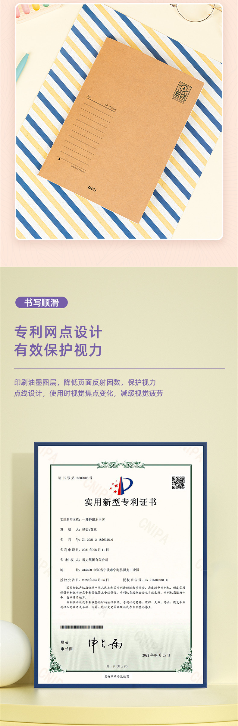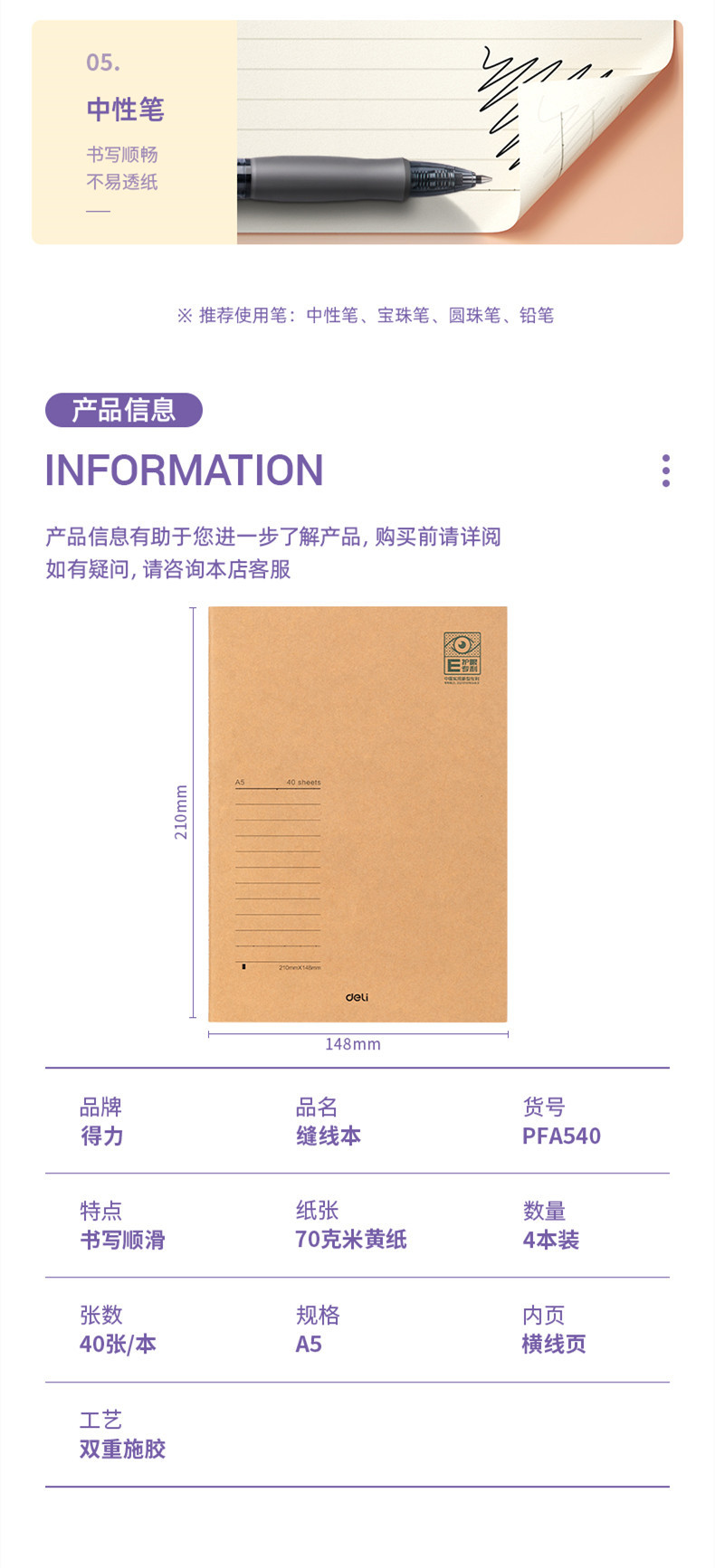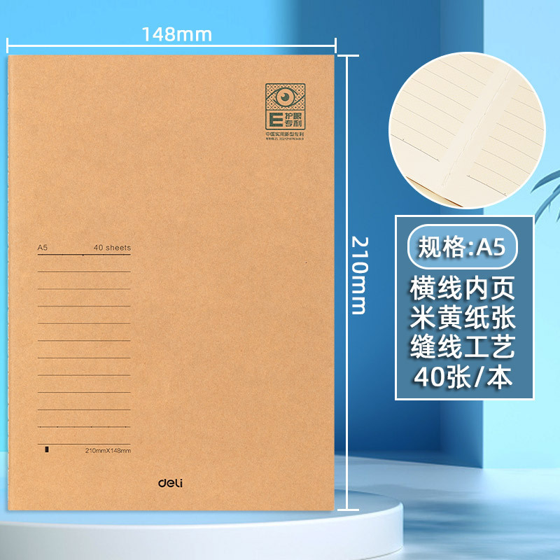 Deli PFA540/PFB540 특허 눈 보호 봉합 도서 A5/B5 학생 교실 운동장 수평 라인 기록부