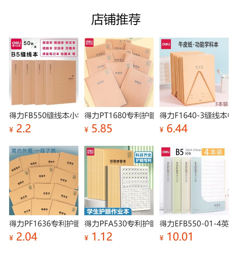 Deli PFA540/PFB540 특허 눈 보호 봉합 도서 A5/B5 학생 교실 운동장 수평 라인 기록부스토어 가기
