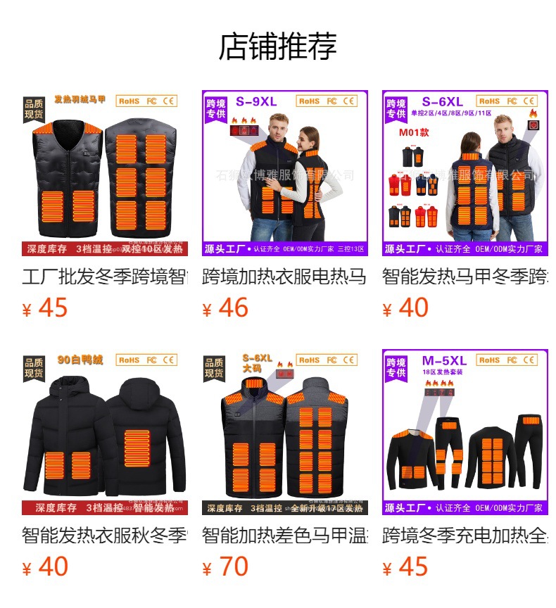 국경 도매 전기 난방 의류 난방 조끼 겨울 남녀 야외 면화 옷 일정한 온도 따뜻한 지능형 난방 조끼스토어 가기