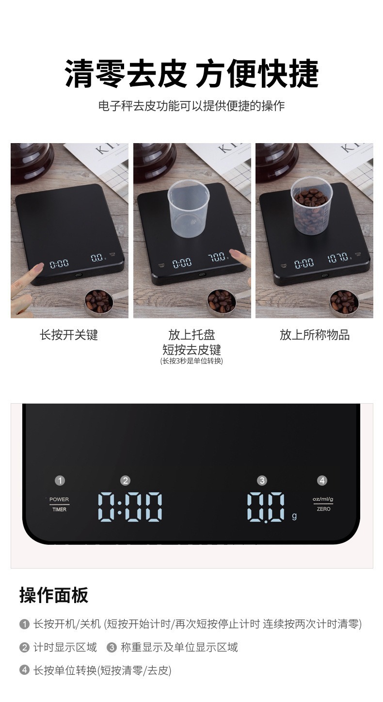 커피 규모 고정밀 타이밍 가정용 정밀 주방 전자 규모 작은 손으로 양조 음식 베이킹 미니 그램 무게 규모