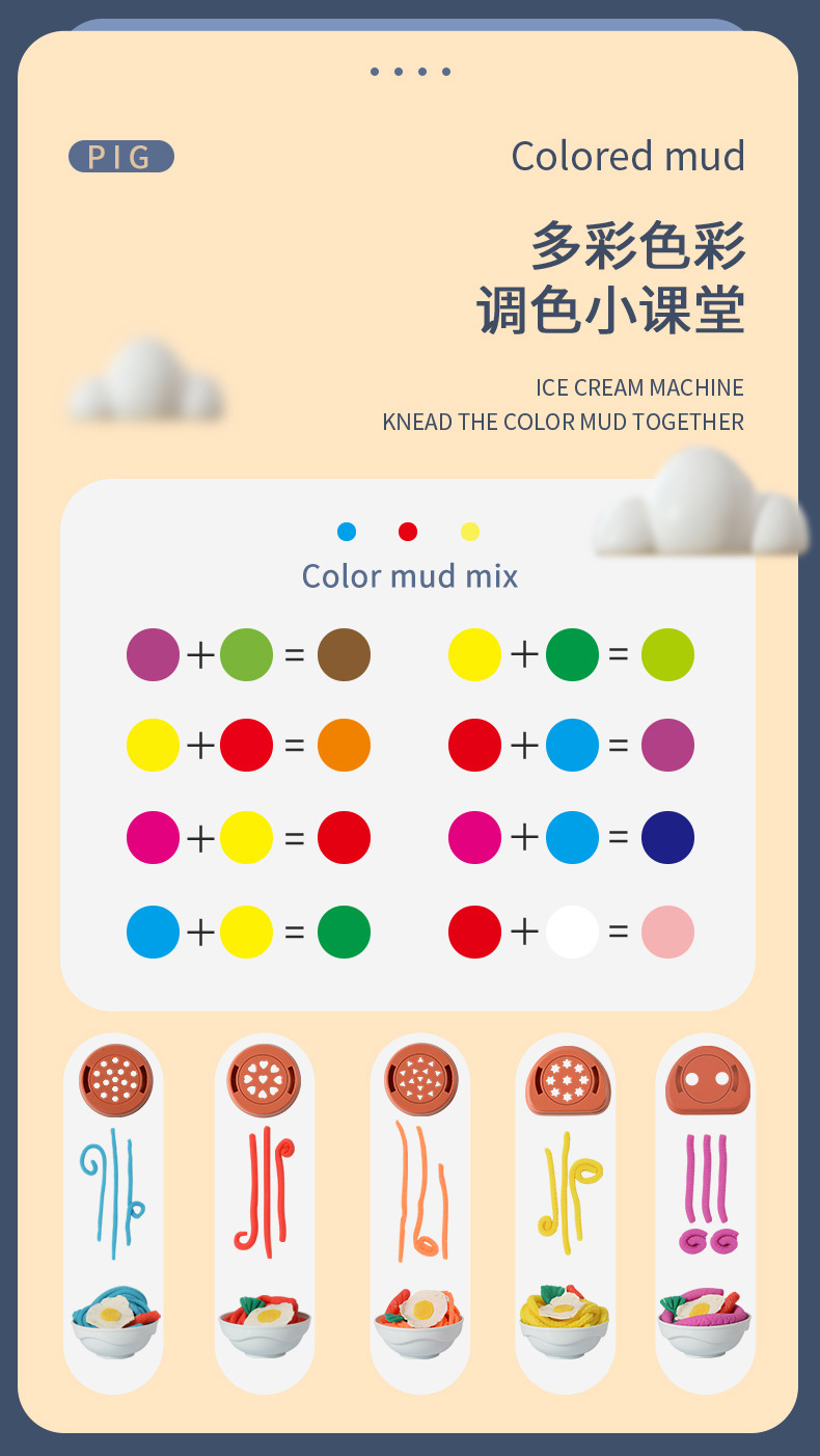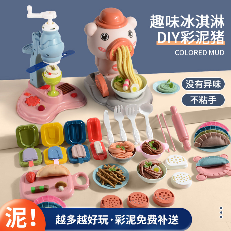 Plasticine 국수 기계 장난감 컬러 진흙 금형 세트 3 6 세 어린이 소년 소녀 점토 초경량 점토 도구