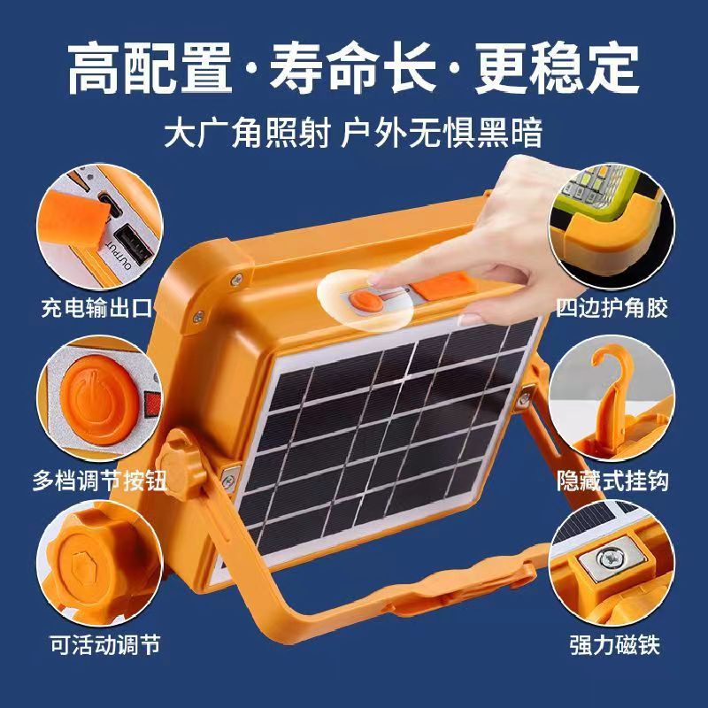Led 태양 휴대용 휴대용 휴대용 휴대용 충전식 모바일 다기능 USB 비상 조명 홍수 조명 야외스토어 가기