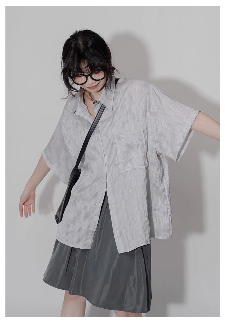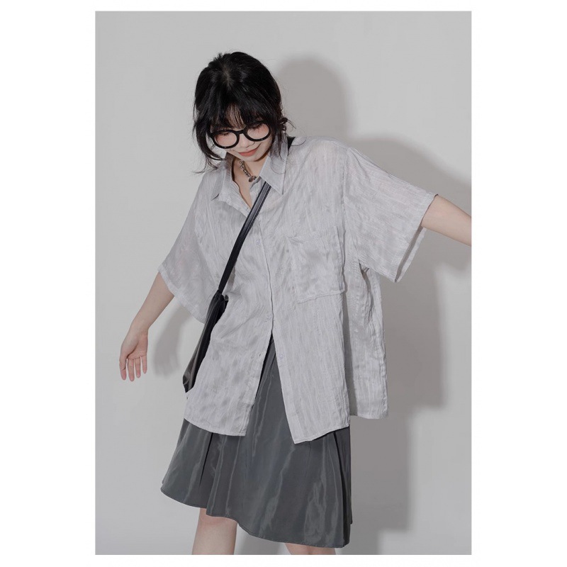 디자인 주름 반팔 셔츠 여성용 여름 질감 틈새 올매치 캐주얼 비대칭 세련된 셔츠스토어 가기