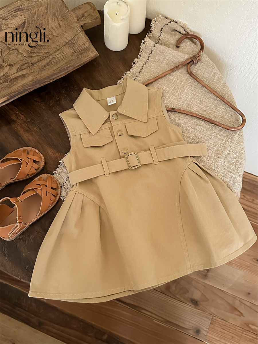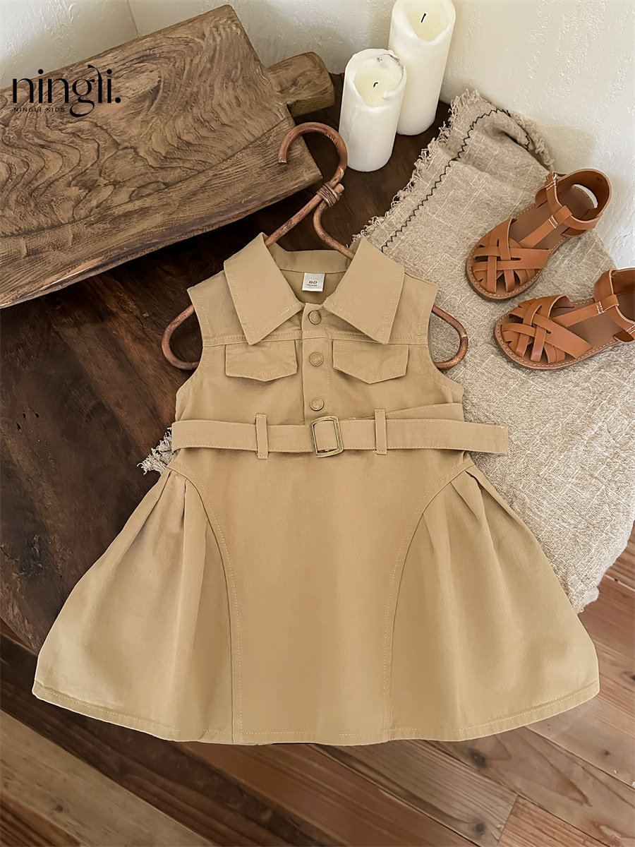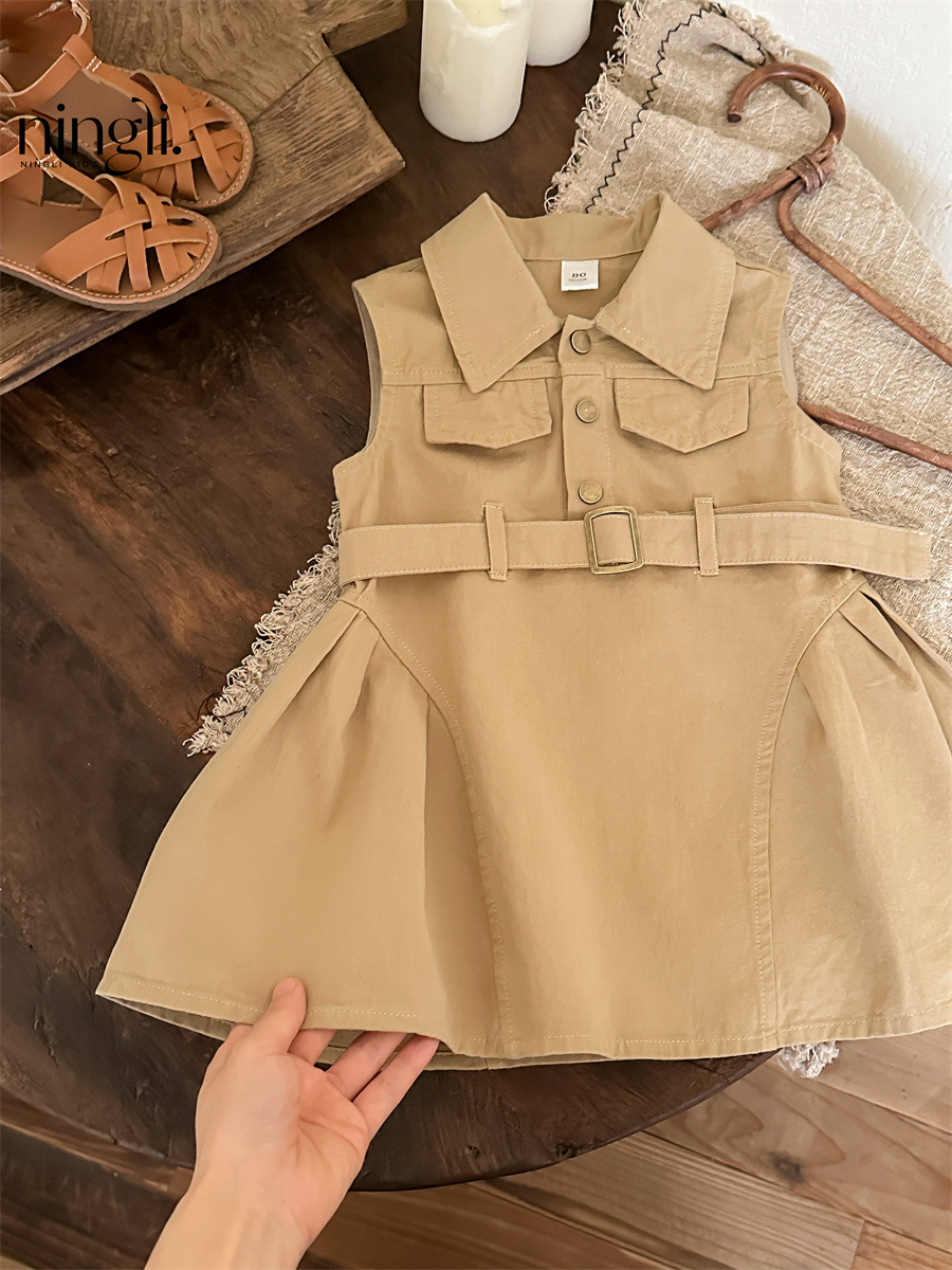 라임 아동복 2024 여름 새 여아 민소매 원피스 아기 패션 디자인 센스 작업복 스커트 스커트스토어 가기