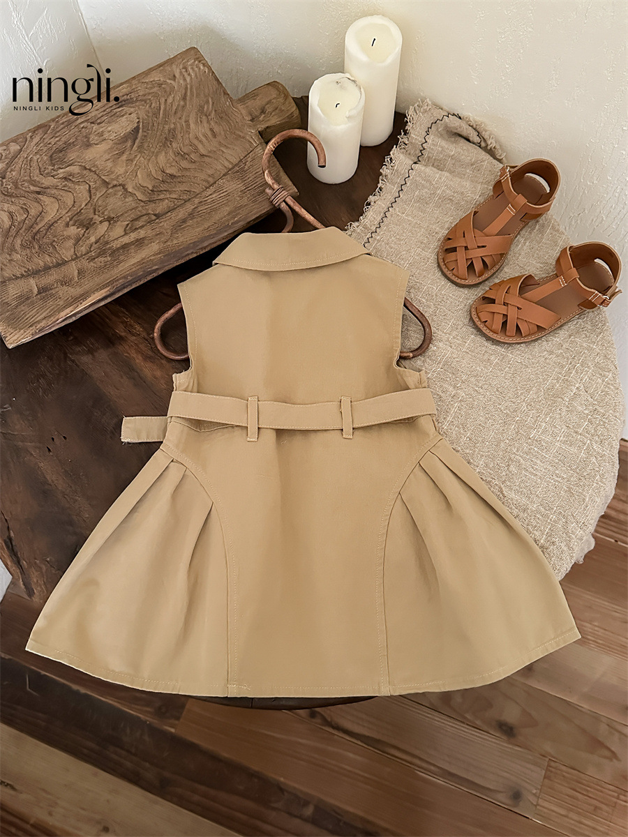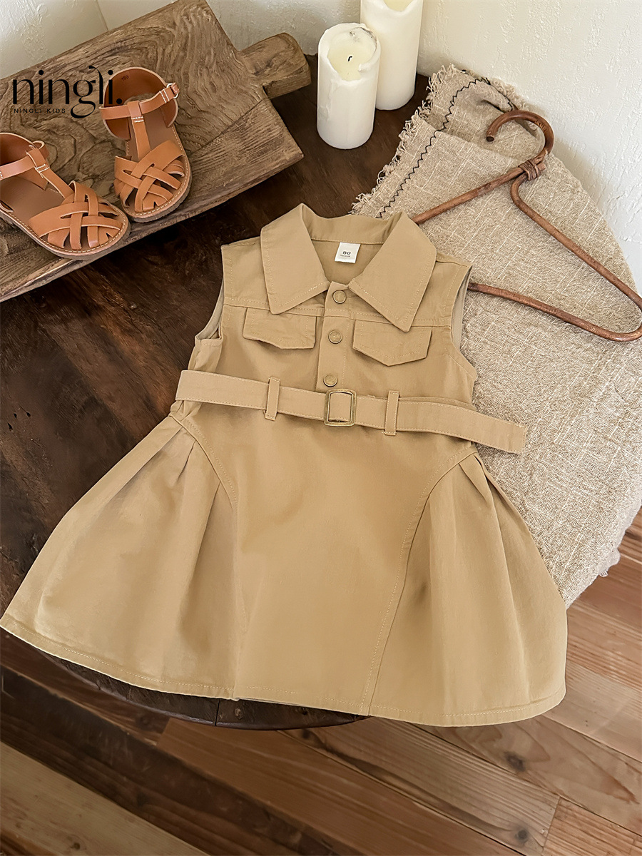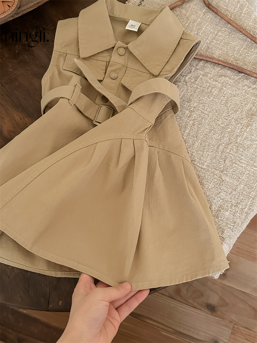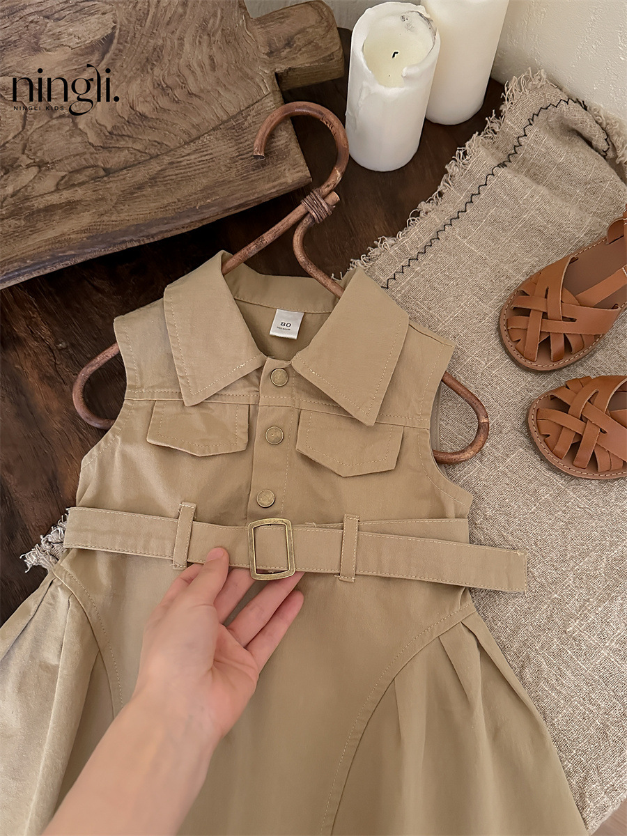 라임 아동복 2024 여름 새 여아 민소매 원피스 아기 패션 디자인 센스 작업복 스커트 스커트스토어 가기
