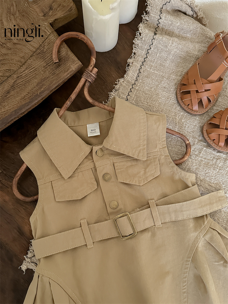 라임 아동복 2024 여름 새 여아 민소매 원피스 아기 패션 디자인 센스 작업복 스커트 스커트