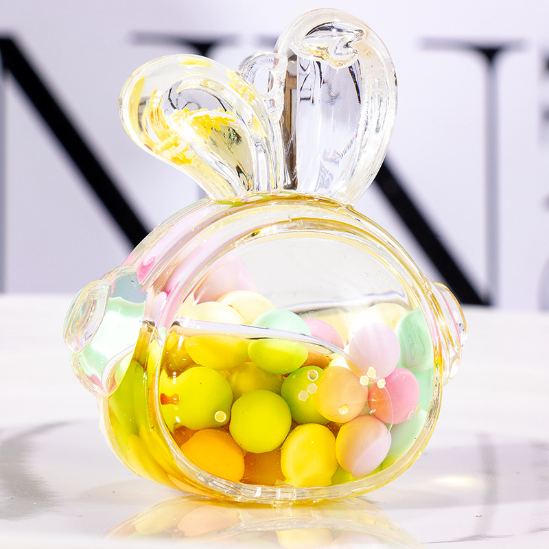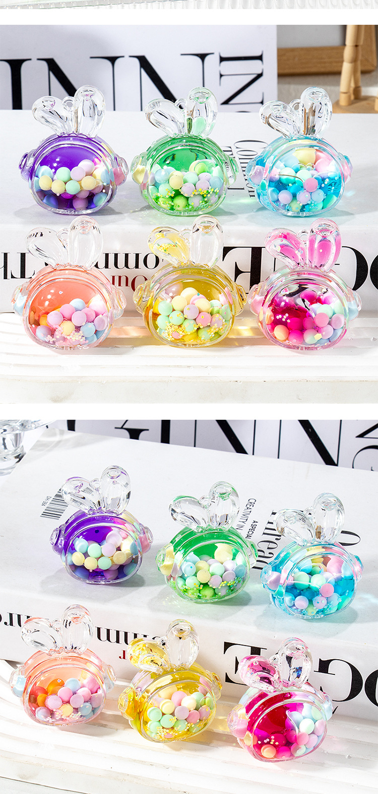 귀여운 토끼 빛나는 오일 퀵 샌드 병 장식 아크릴 키 체인 액세서리 가방 펜던트 도매 작은 선물스토어 가기