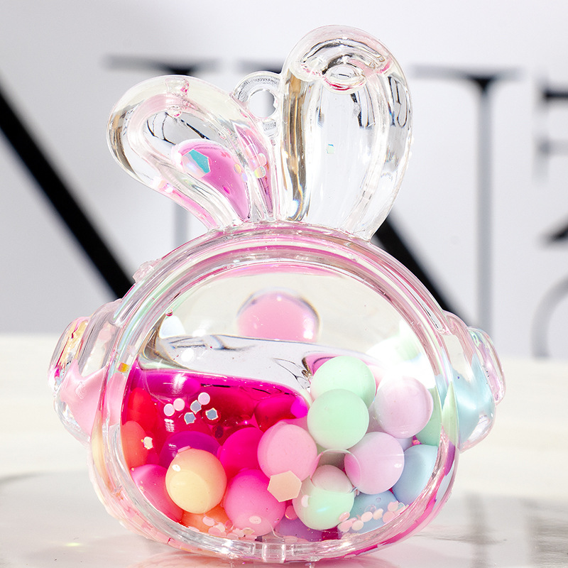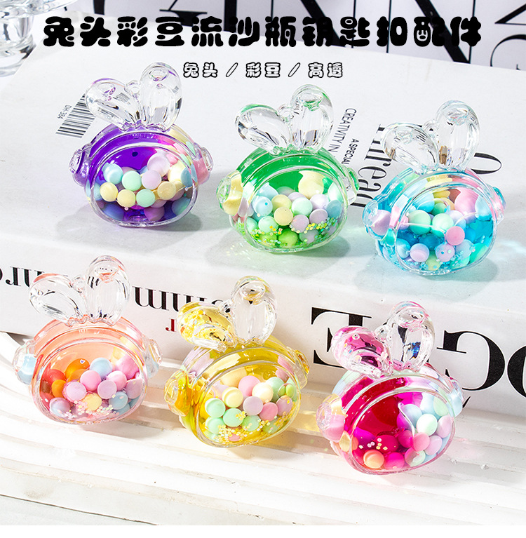 귀여운 토끼 빛나는 오일 퀵 샌드 병 장식 아크릴 키 체인 액세서리 가방 펜던트 도매 작은 선물
