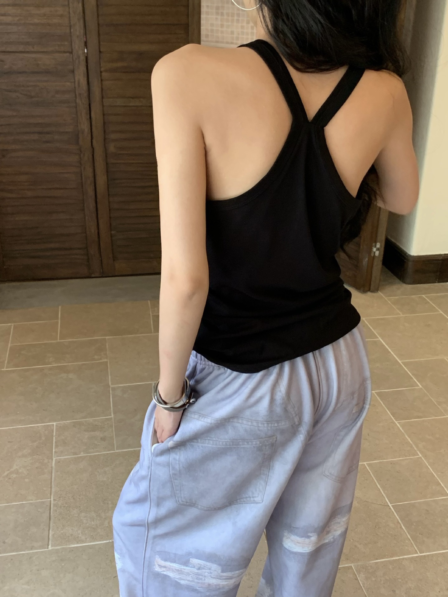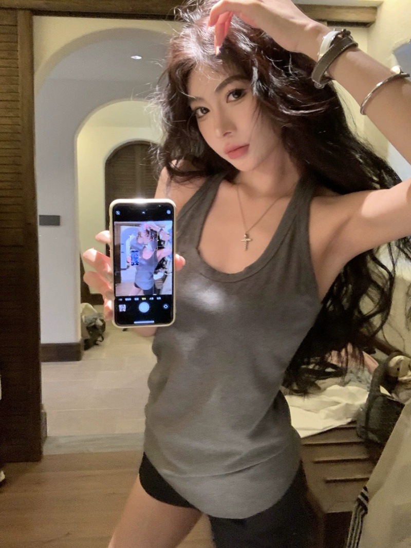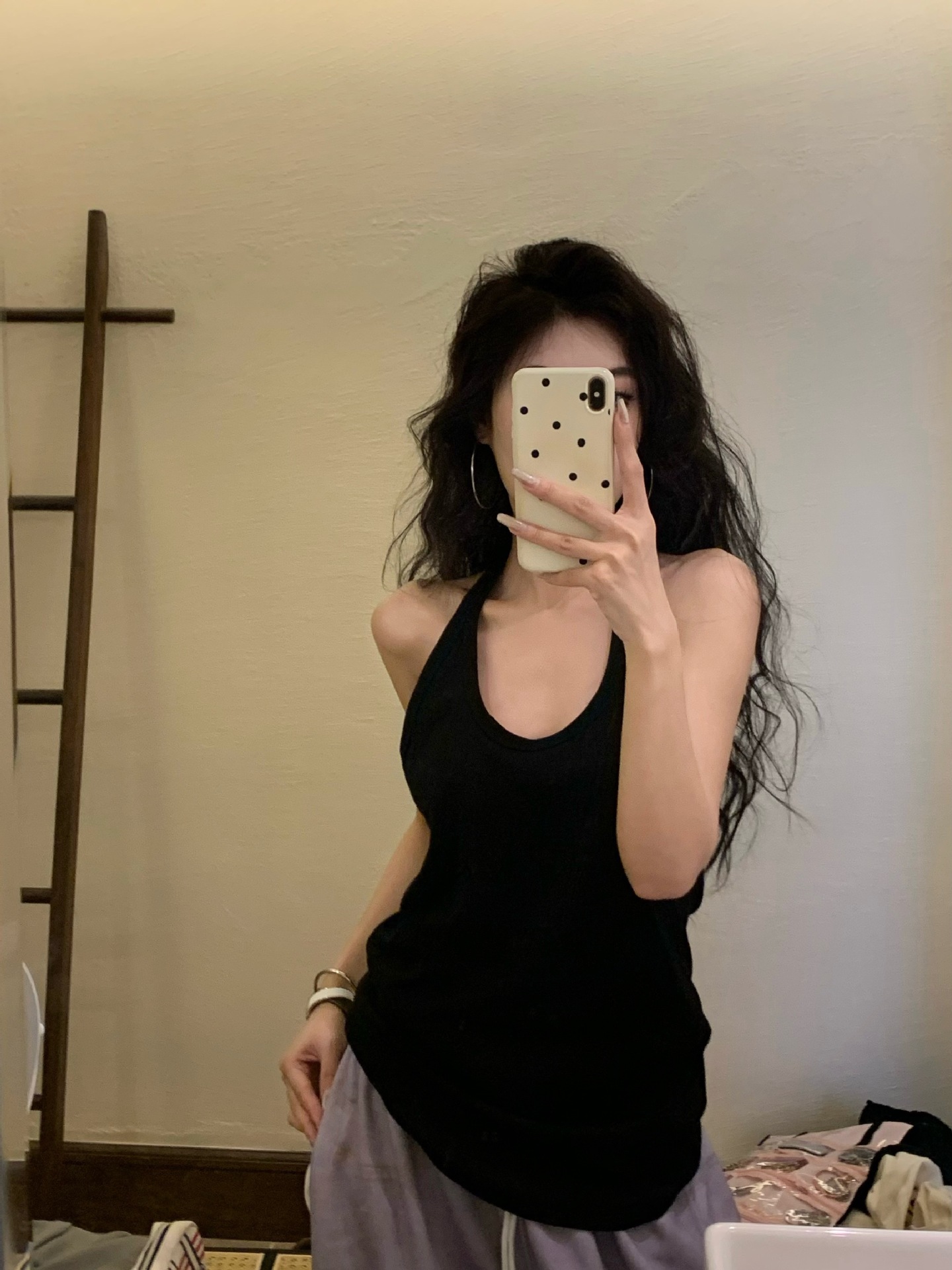 스파이스 걸스 블랙 I 자형 카미 솔 여성용 여름 캐주얼 게으른 스타일 루즈베이스 내부 민소매 탑스토어 가기