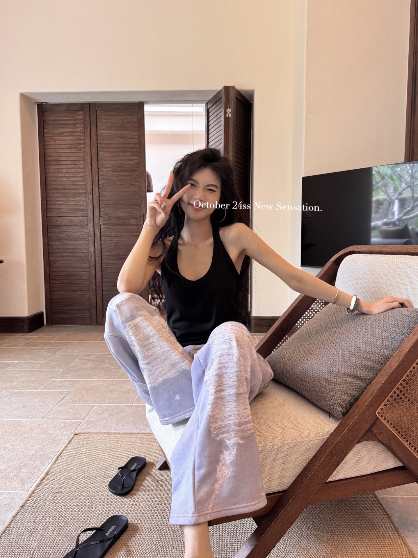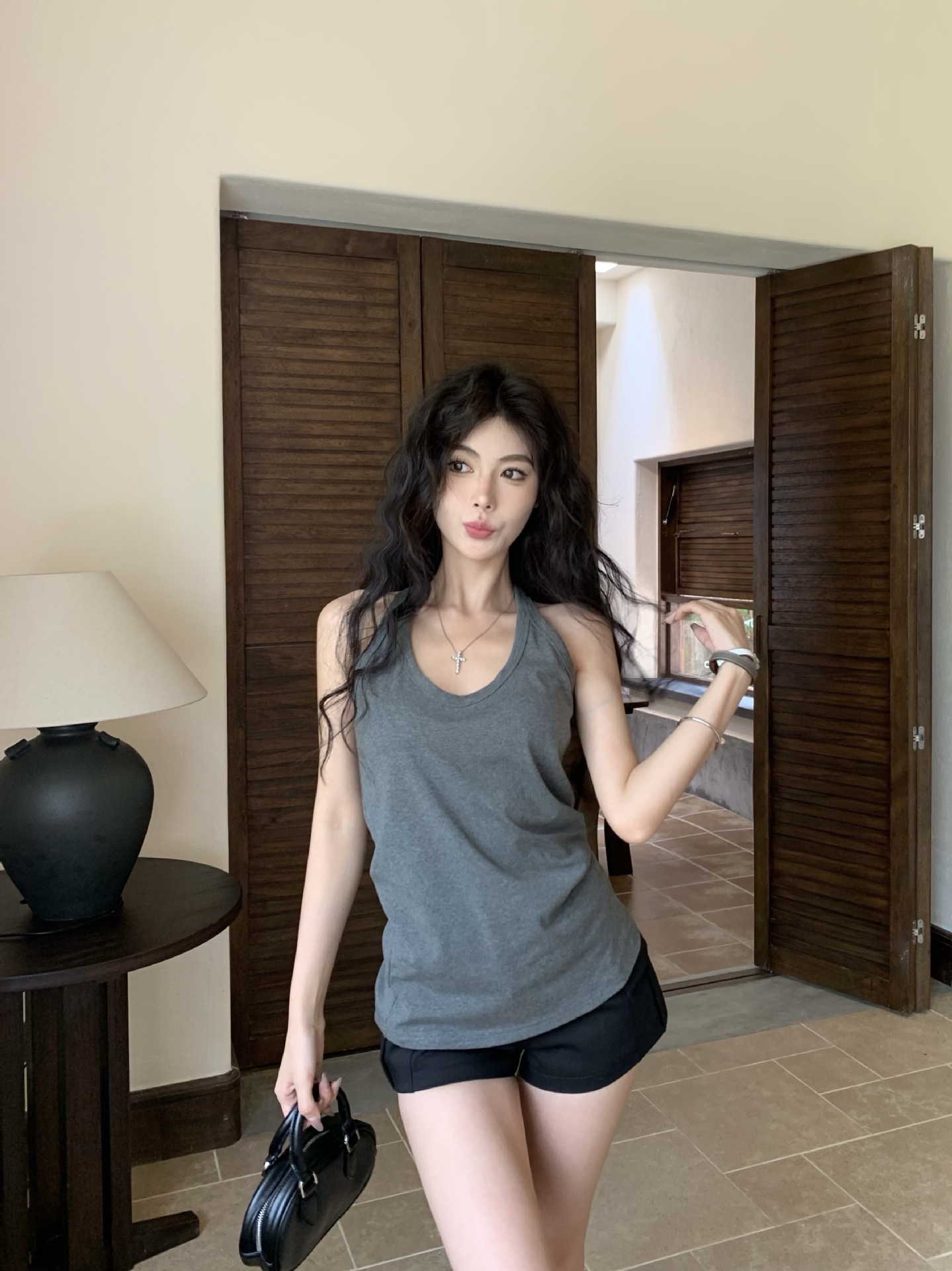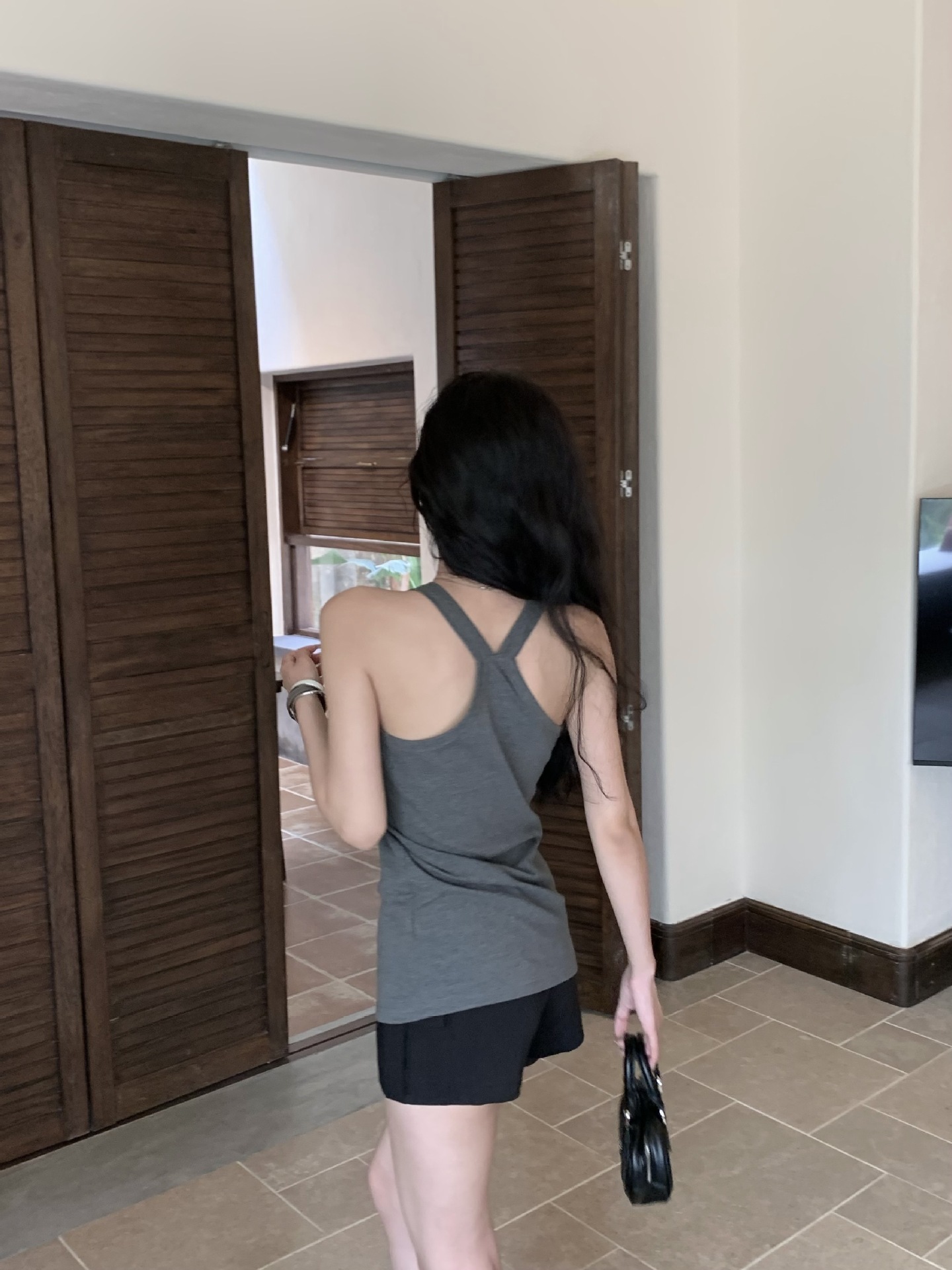 스파이스 걸스 블랙 I 자형 카미 솔 여성용 여름 캐주얼 게으른 스타일 루즈베이스 내부 민소매 탑스토어 가기