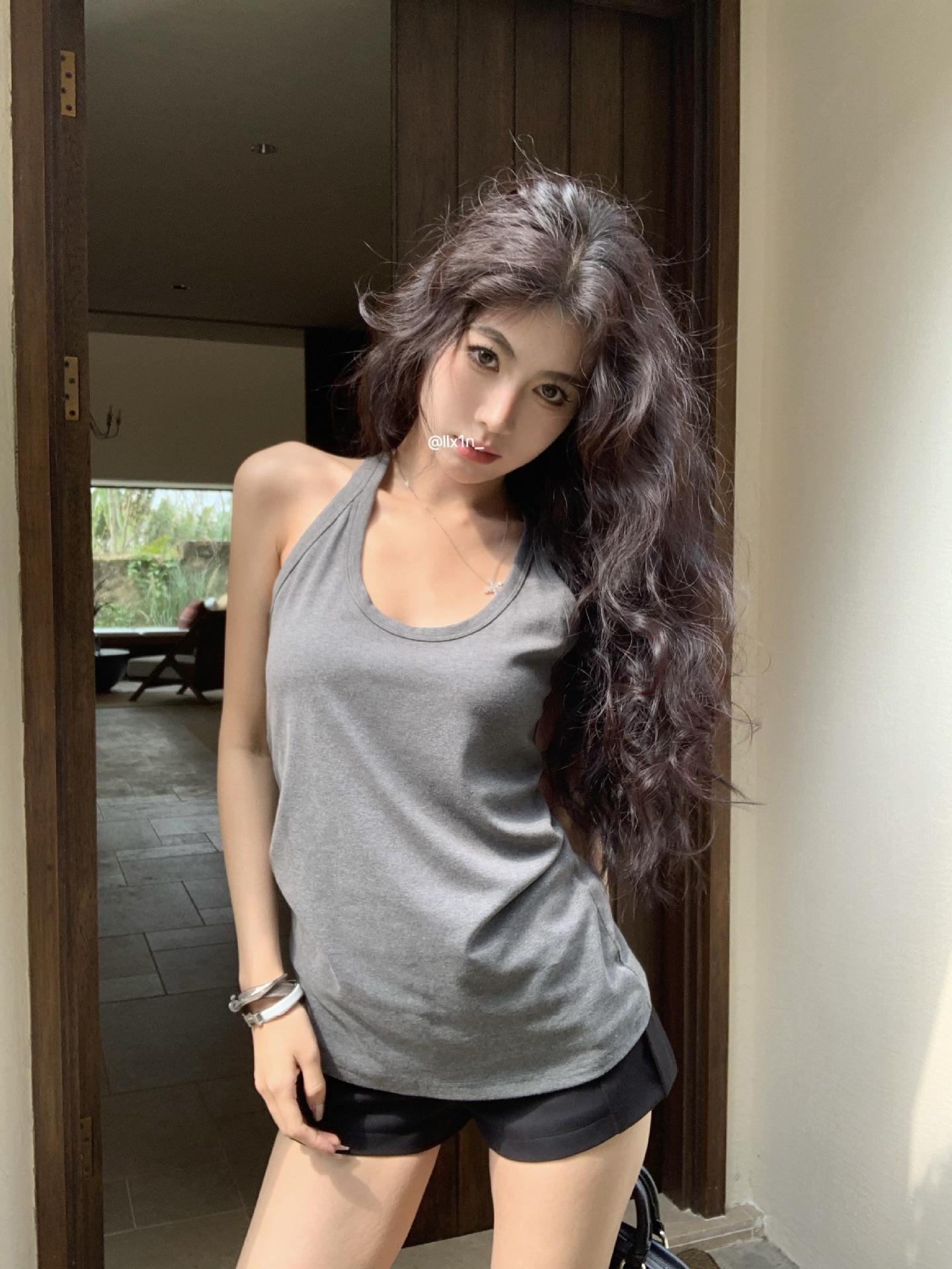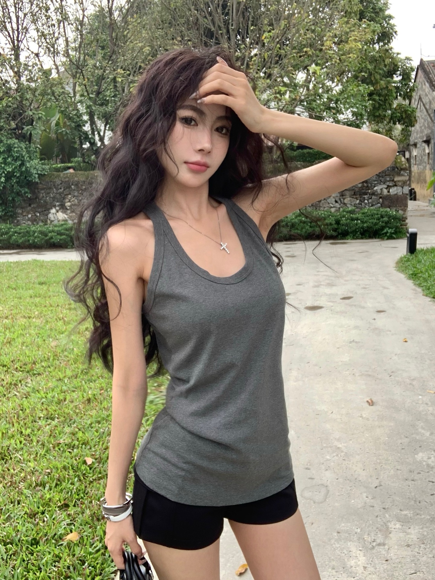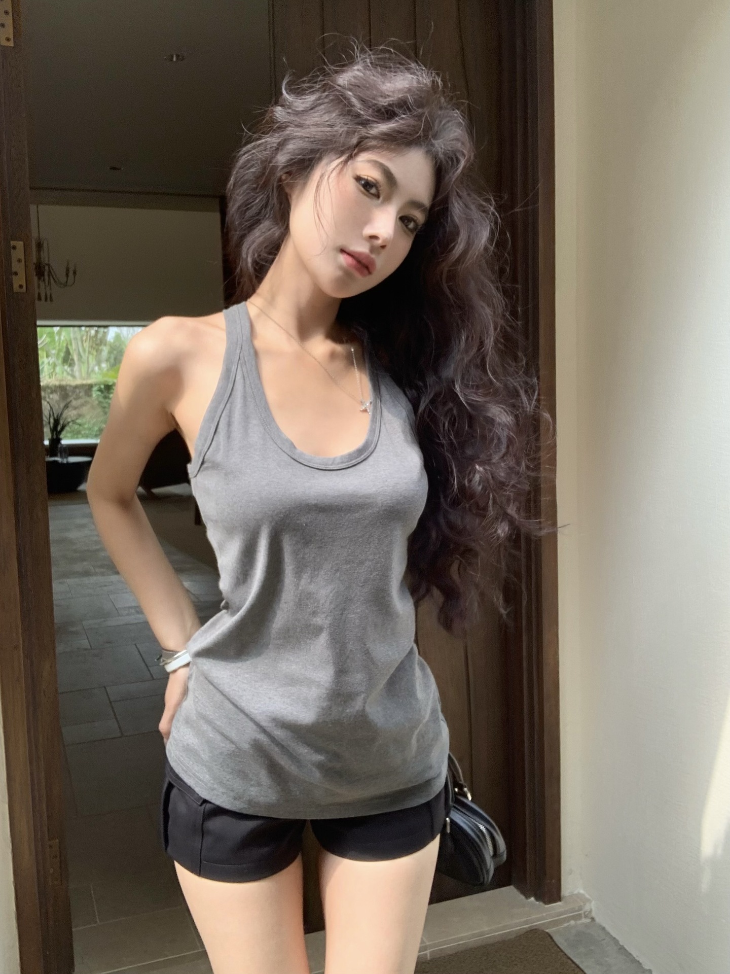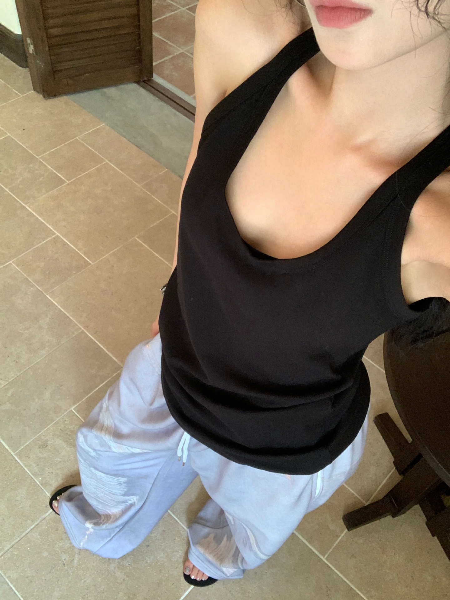 스파이스 걸스 블랙 I 자형 카미 솔 여성용 여름 캐주얼 게으른 스타일 루즈베이스 내부 민소매 탑