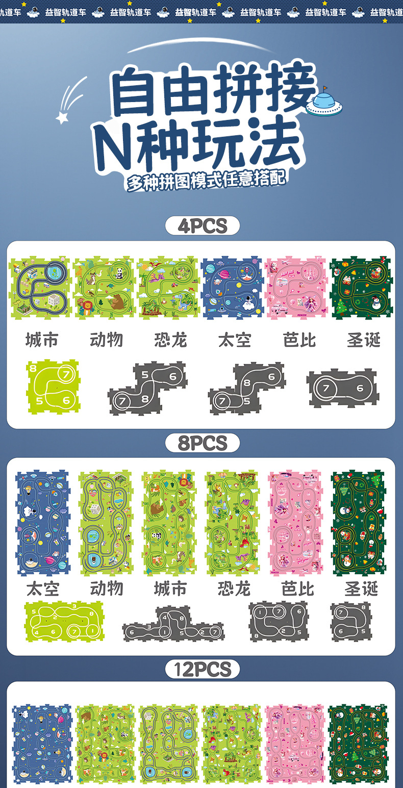 국경 간 크리스마스 직소 열차 어린이 퍼즐 직소 레일 자동차 DIY 조립 된 전기 자동차 트랙 장난감스토어 가기