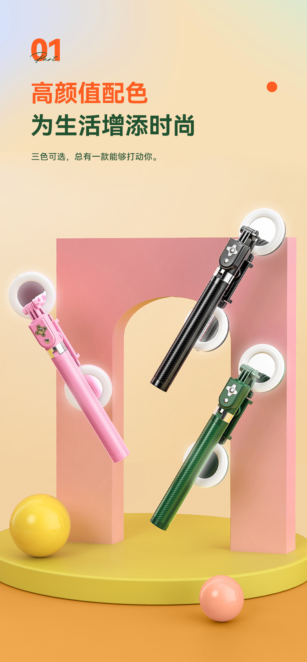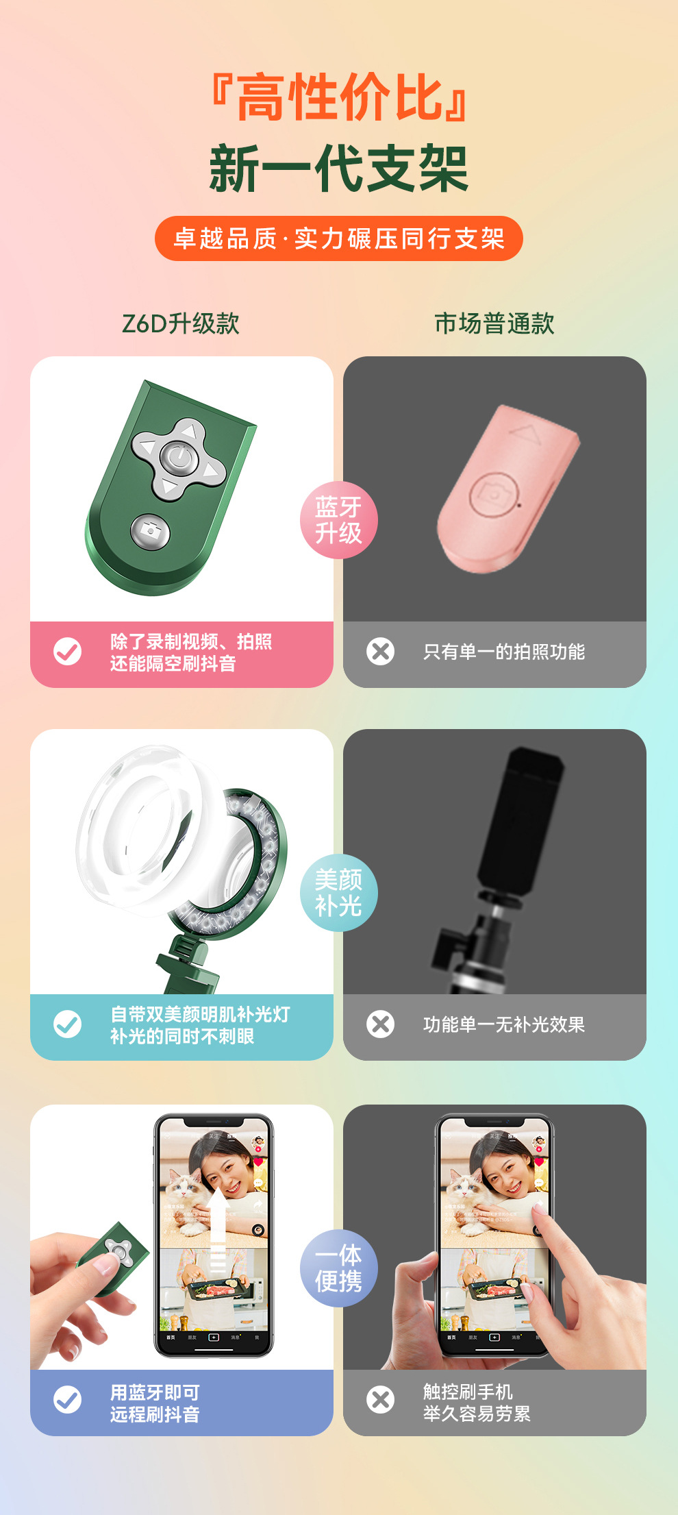 알루미늄 합금 R17D 셀카봉 1.7m 뷰티라이트 다기능 블루투스 장치 야외 라이브 방송 휴대용 Z6D 세로 촬영