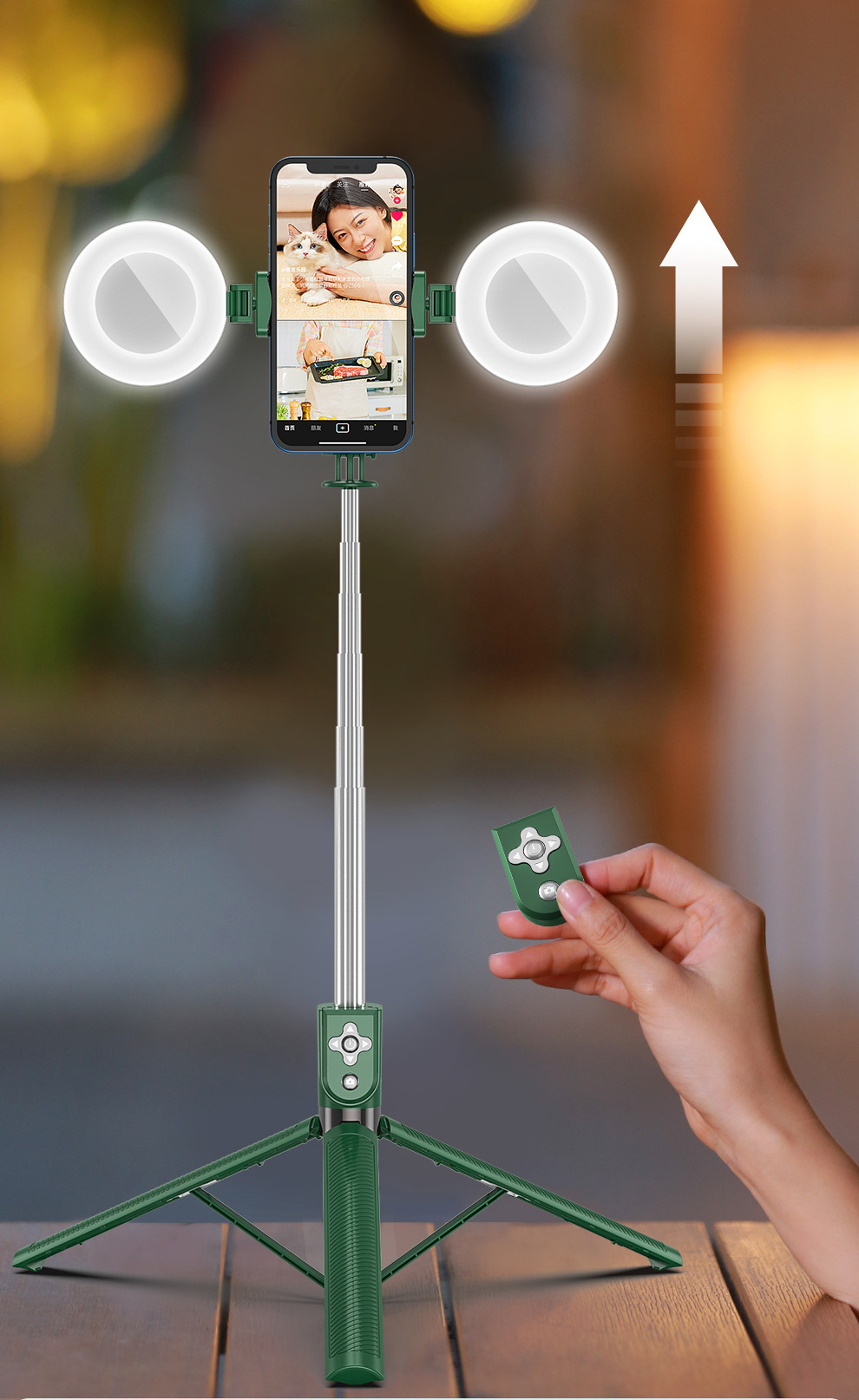 • 블랙 1.8m 셀카봉 + 이중 소형 조명