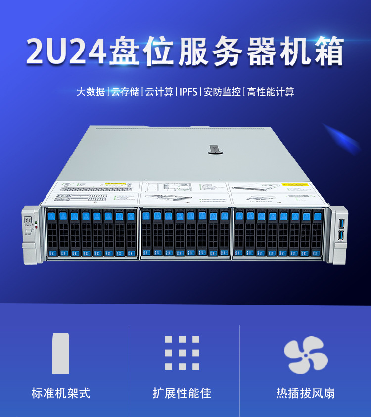 2U24 소형 디스크 랙 서버 IPFS 렌더링 스토리지 컴퓨팅 데이터베이스 AIO 서버 NAS 섀시스토어 가기