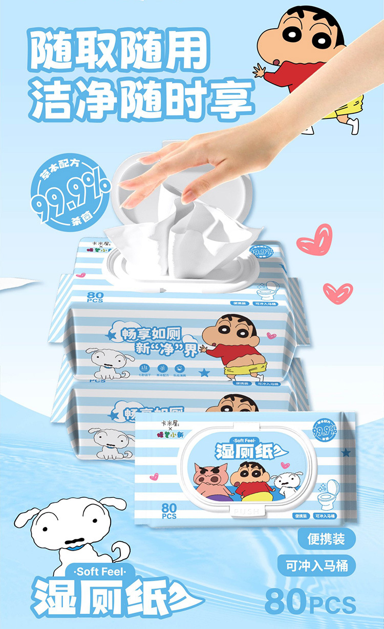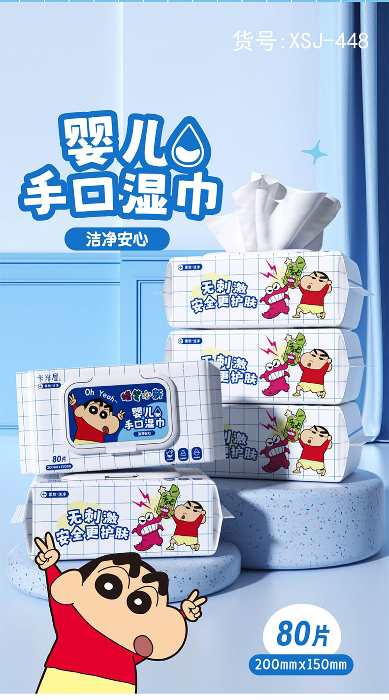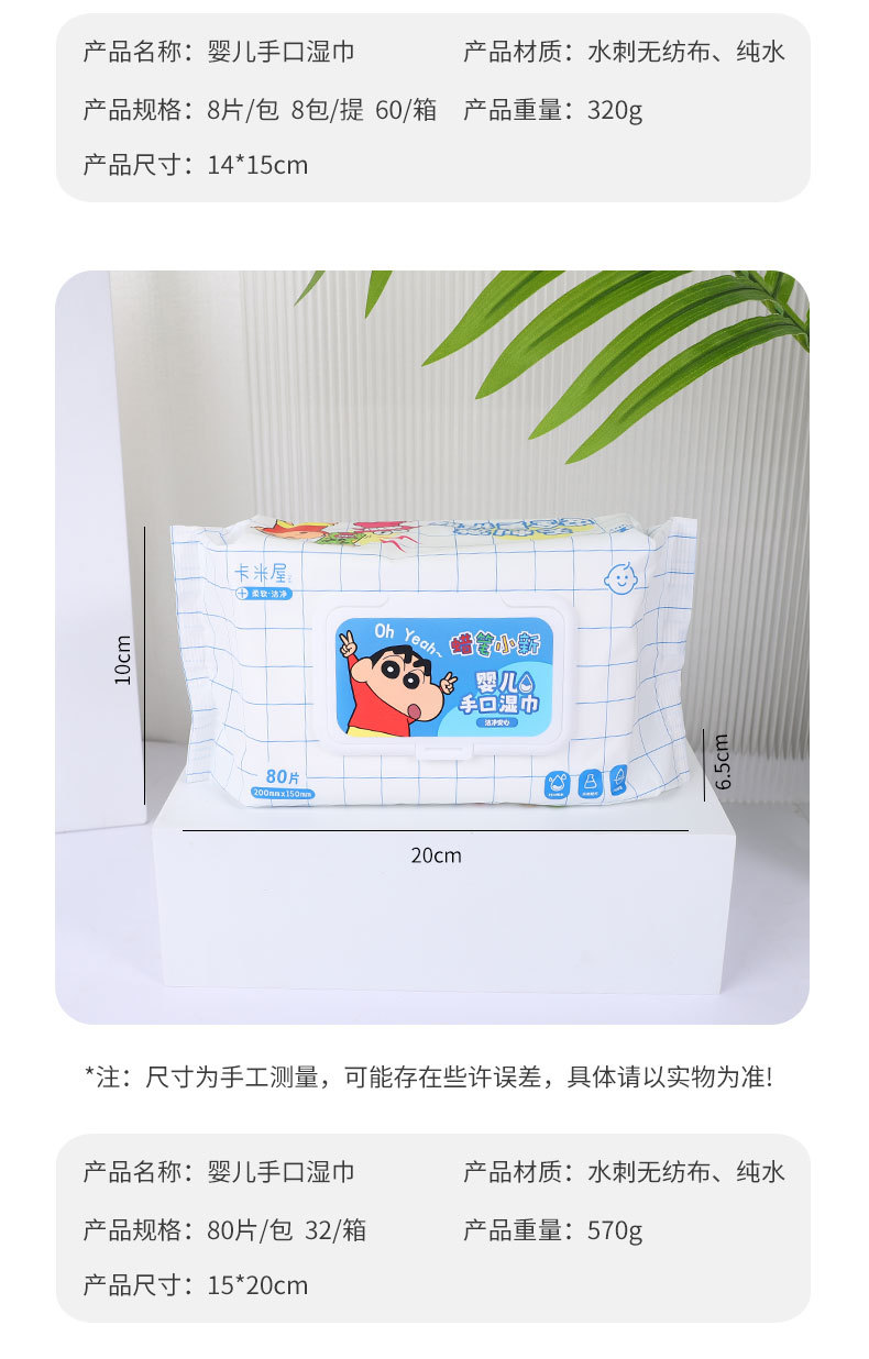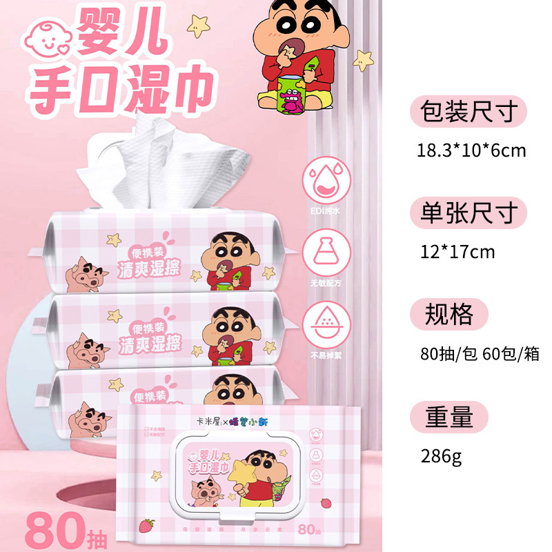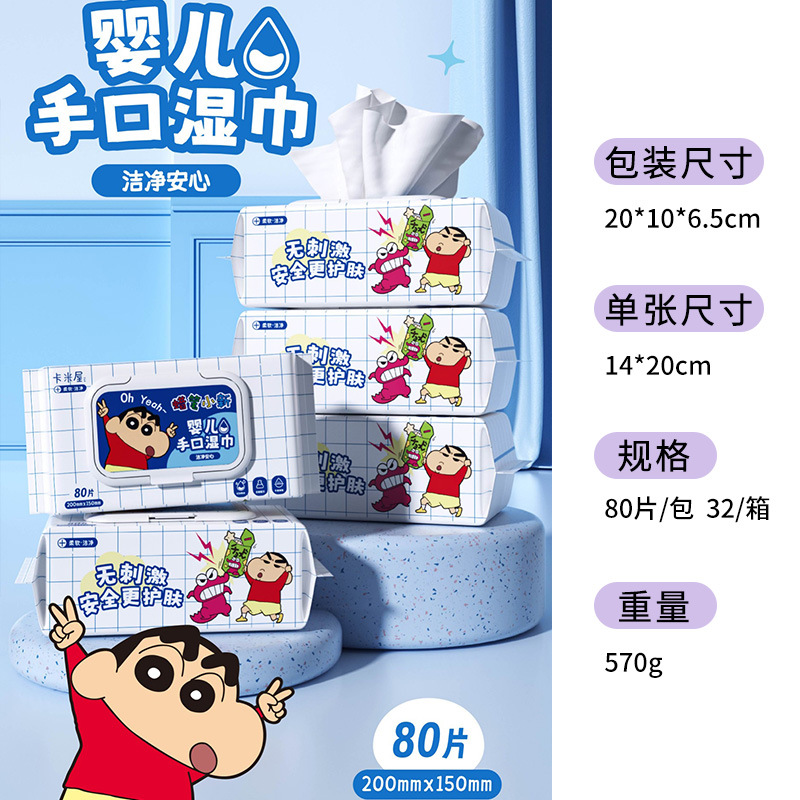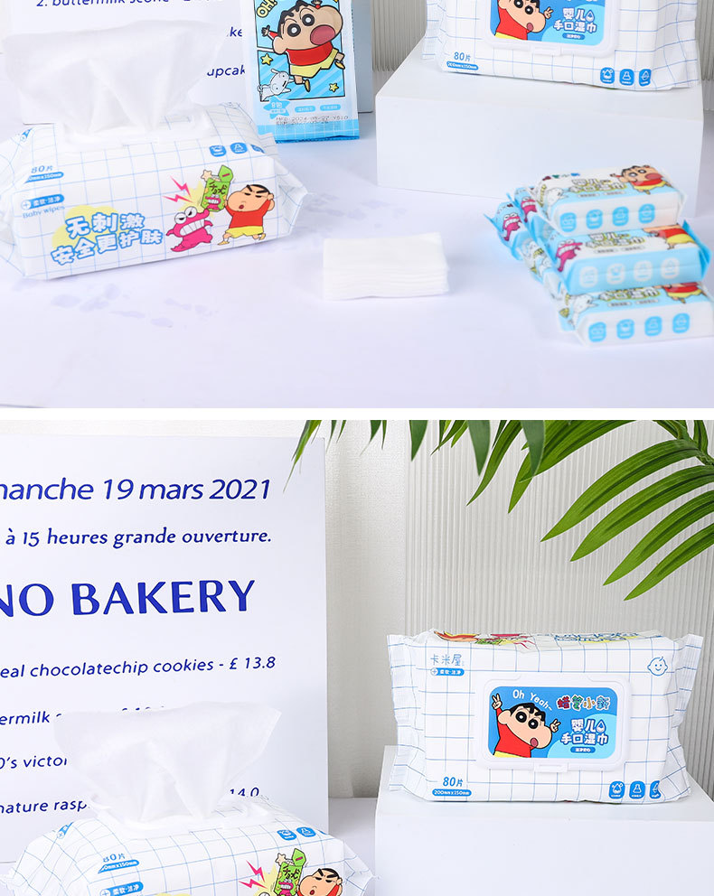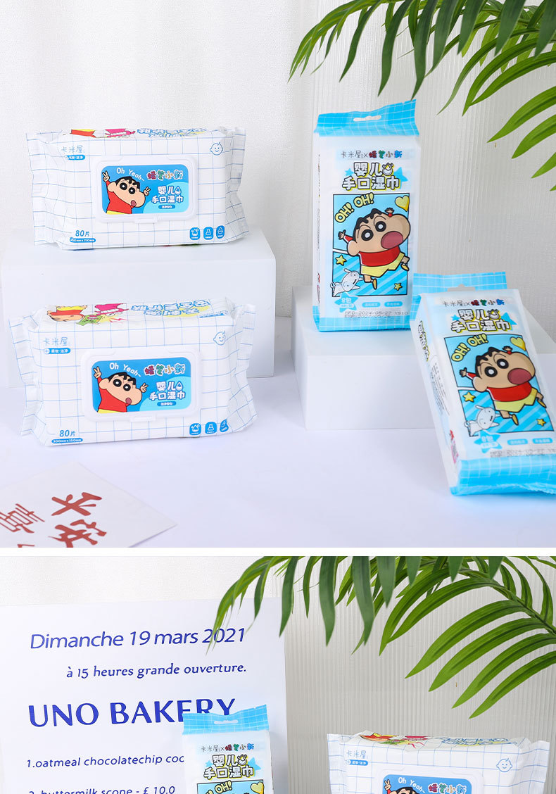 크레용 작은 새로운 정품 수트 물티슈 아기 손 물티슈 큰 가방 가정용 위생 청소 물티슈 종이 물티슈