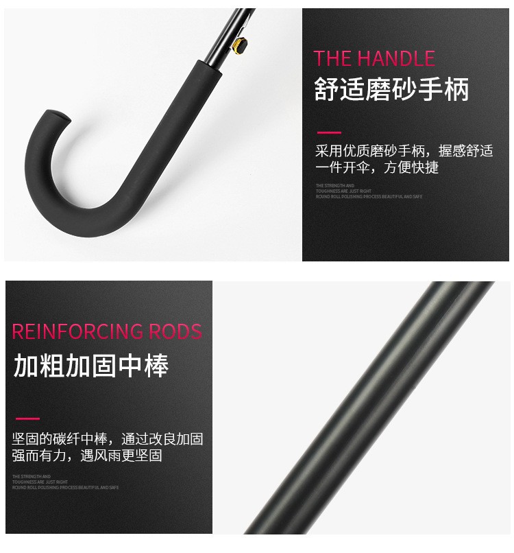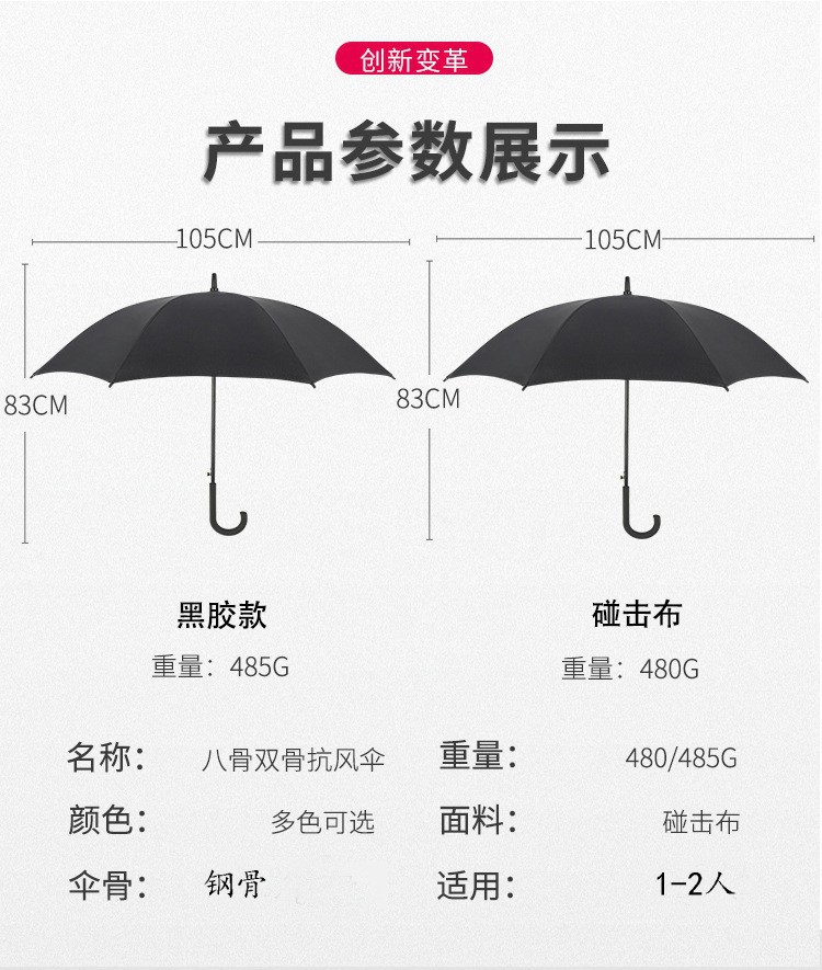 • 지팡이 우산 블랙 접착제 더블 8 뼈-블랙