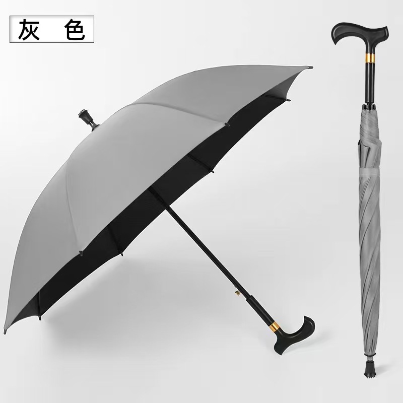 목발 긴 우산 더블 뼈 8-뼈 강화 자동 우산 맑고 비오는 이중 사용 비 슬립 등반 다기능 워킹 스틱 차양