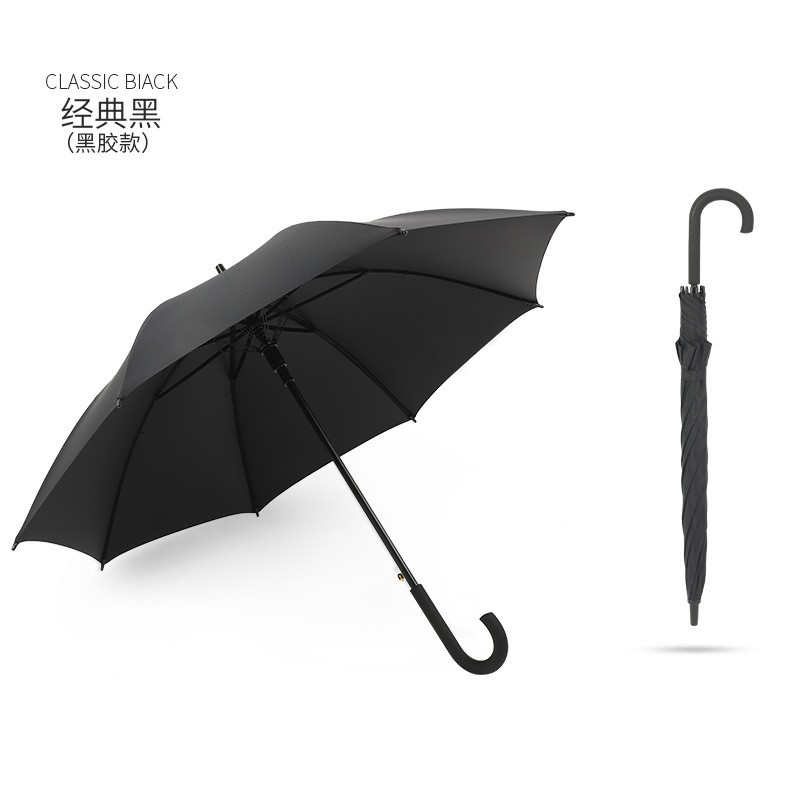 • 23inch 이중 뼈 곡선 핸들 우산 비닐 스타일-블랙