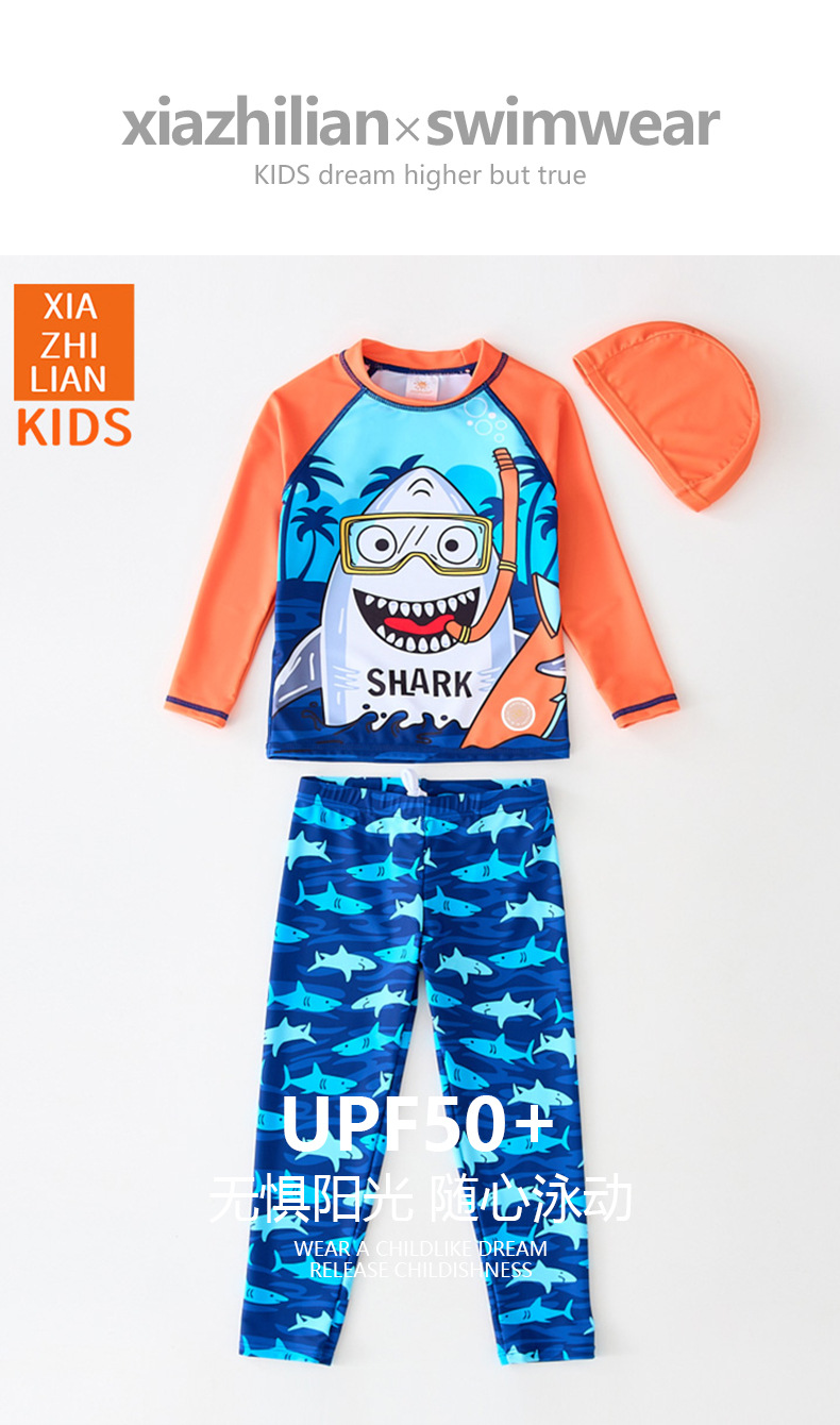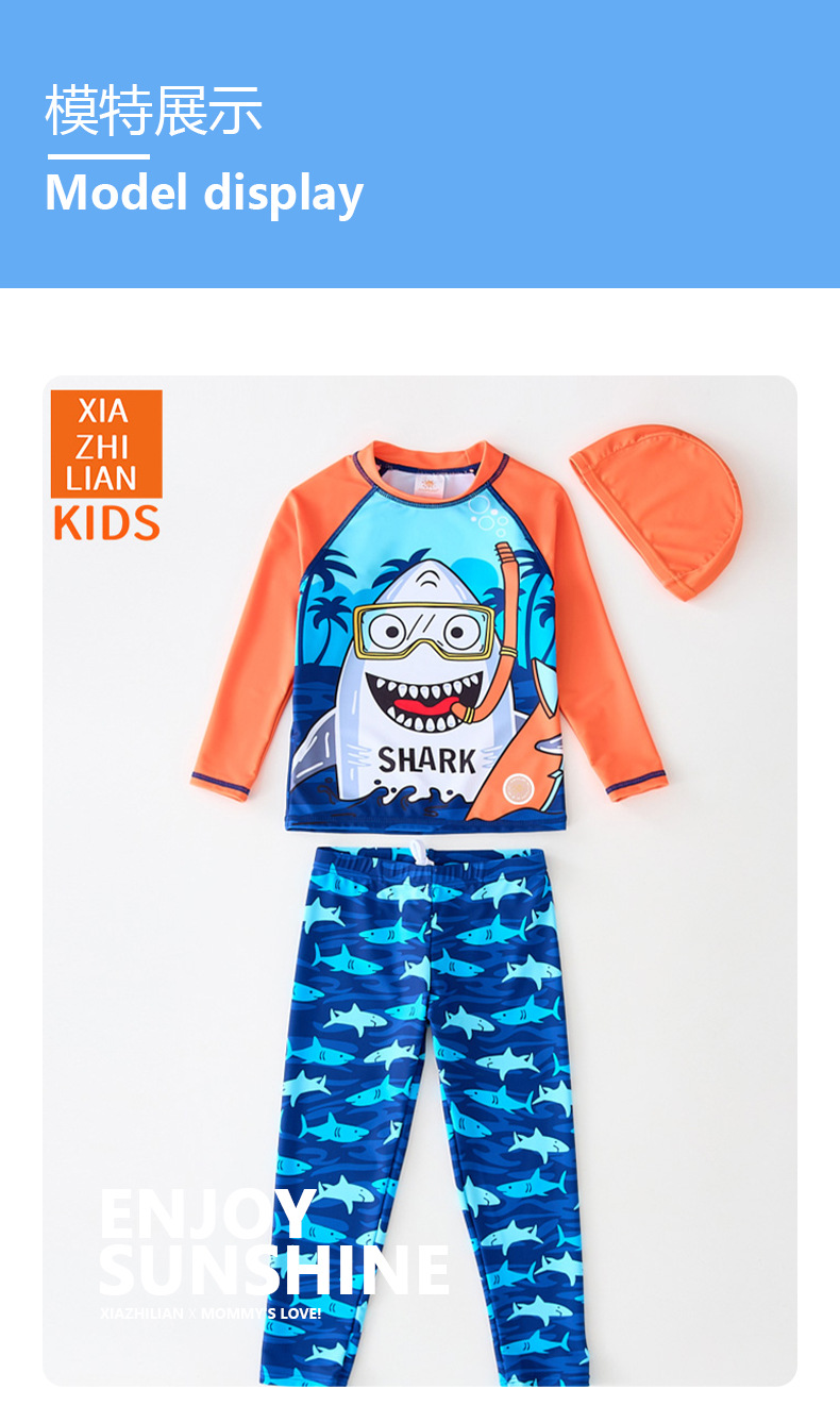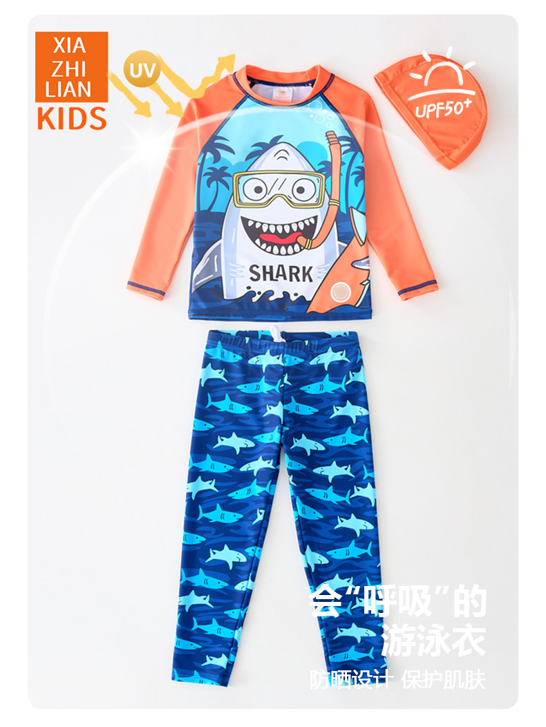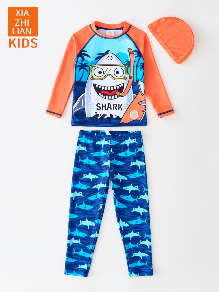 韩国儿童泳衣分体男童长袖长裤卡通鲨鱼防晒沙滩宝宝冲浪服游泳衣