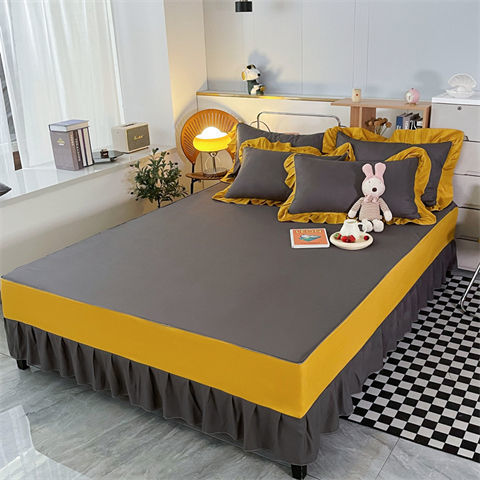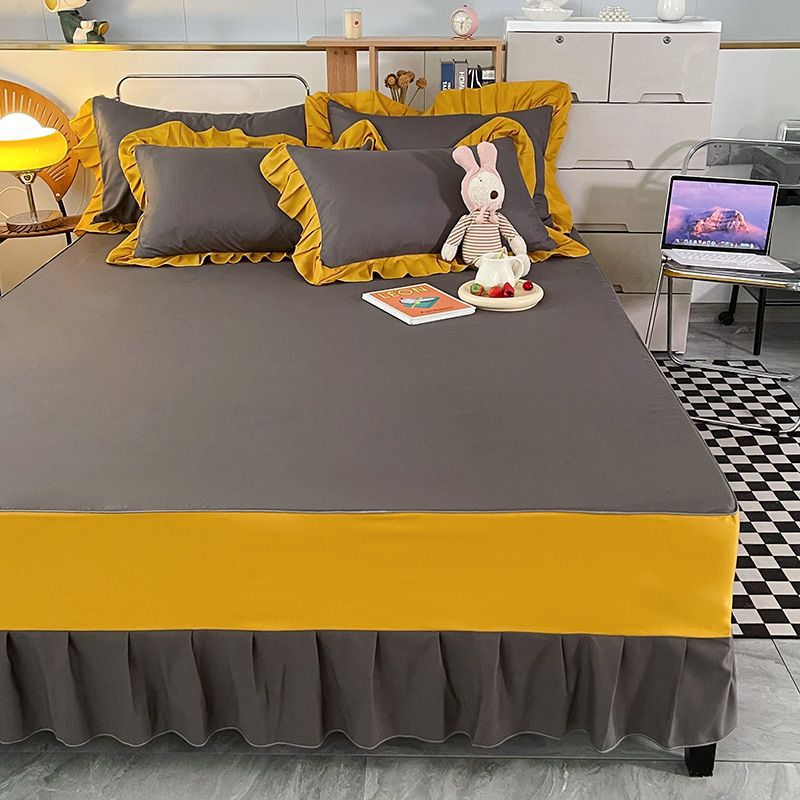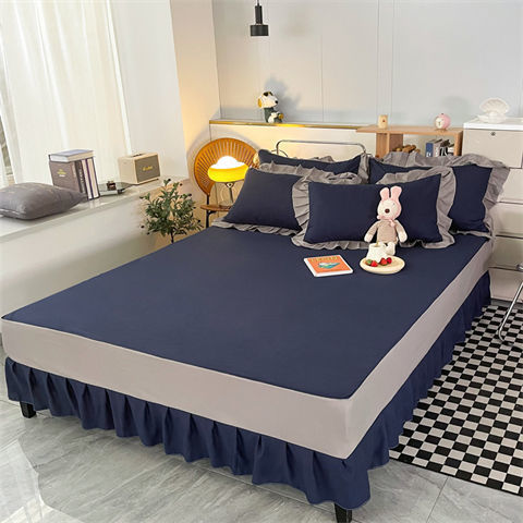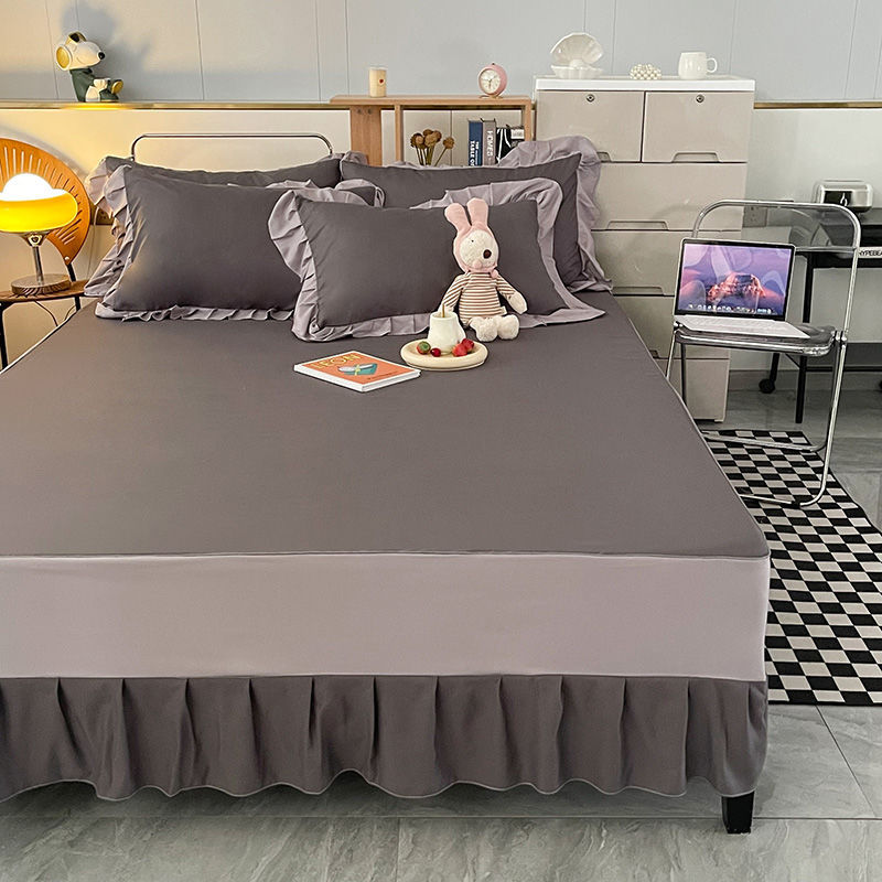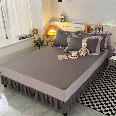 Ins 간단한 신사 회색 먼지 방지 세척 가능한 면화 침대보 단일 조각 침대 스커트 비 슬립 침대 커버 3 피스 세트