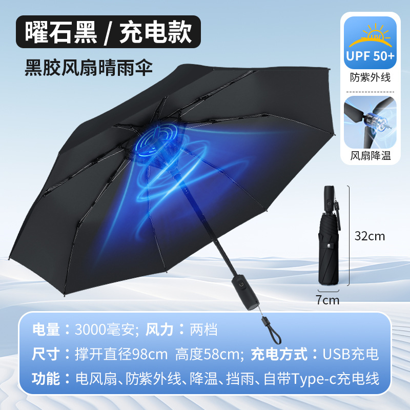 风扇雨伞充电折叠防晒降温伞礼品晴雨两用防紫外线有风扇的遮阳伞