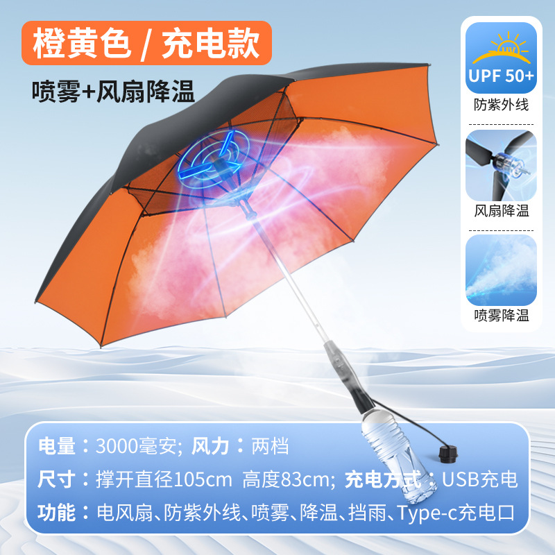 带风扇的雨伞遮阳伞喷雾降温USB充电户外长把柄大号遮阳防紫外线