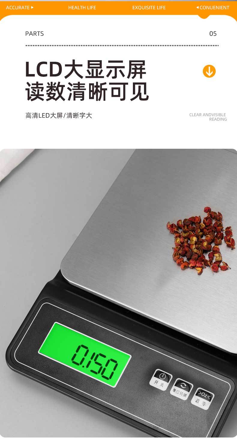 국경 스테인레스 스틸 다기능 소형 전자 저울 주방 고정밀 베이킹 식품 규모 전자 스케일 제조 업체 도매스토어 가기