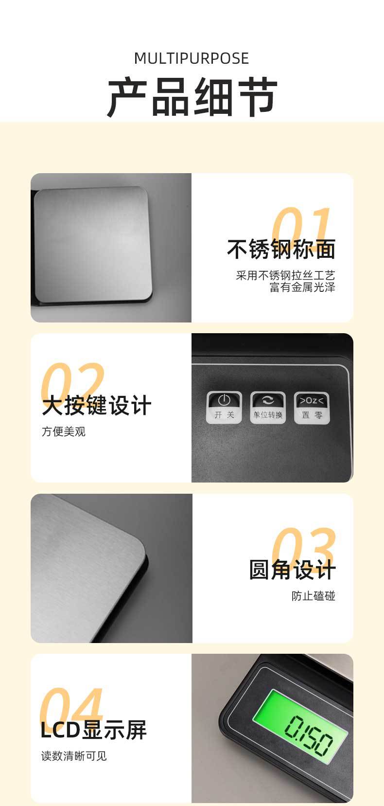 국경 스테인레스 스틸 다기능 소형 전자 저울 주방 고정밀 베이킹 식품 규모 전자 스케일 제조 업체 도매
