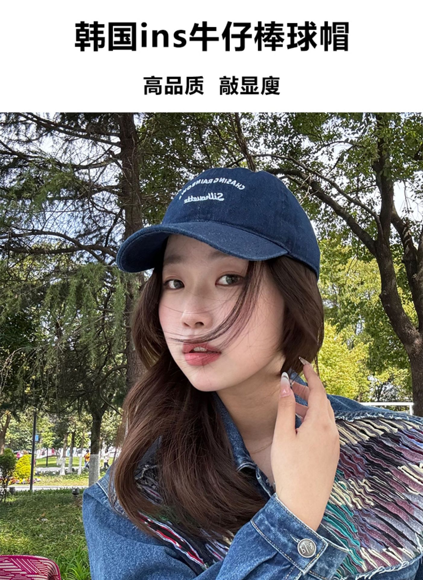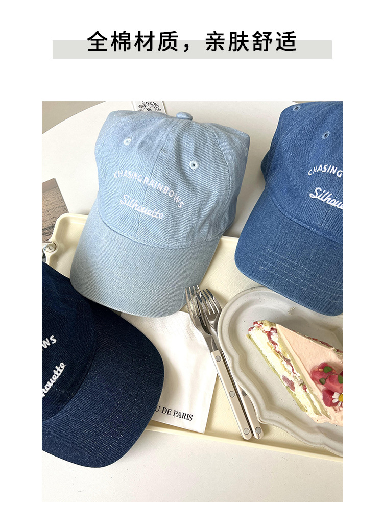 한국 스타일 문자 수 놓은 라이트 블루 데님 모자 남녀 미국 힙합 야구 모자 선 스크린 모자스토어 가기