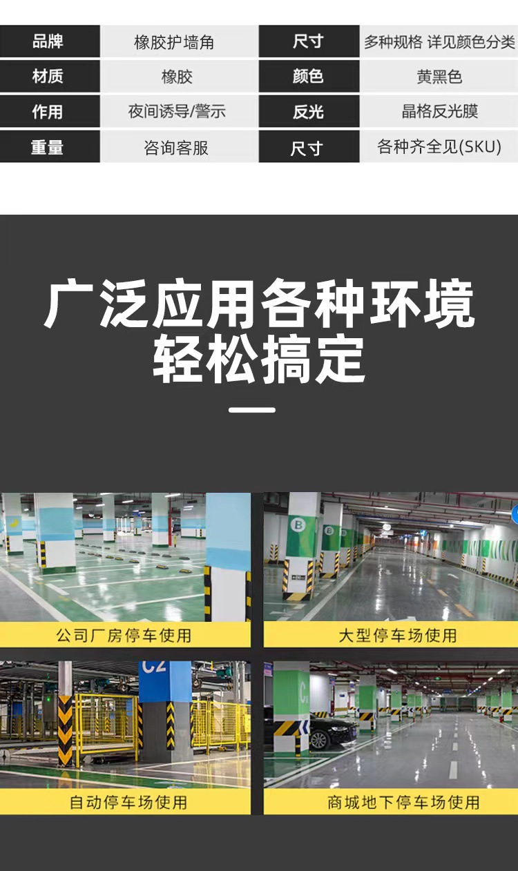 공장 직접 공급 지하 차고 직각 버퍼 가장자리 반사 충돌 방지 스트립 경고 스트립 벽 스트립 고무 코너 보호기