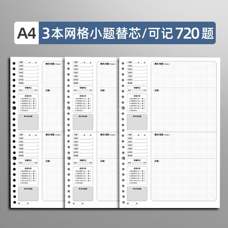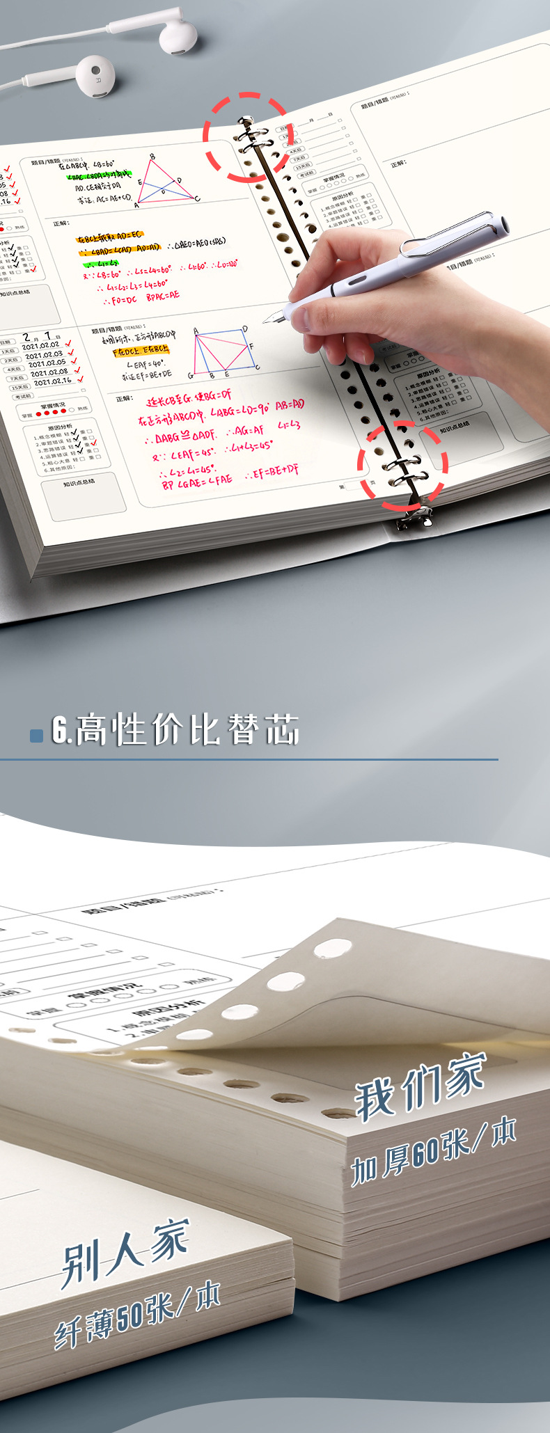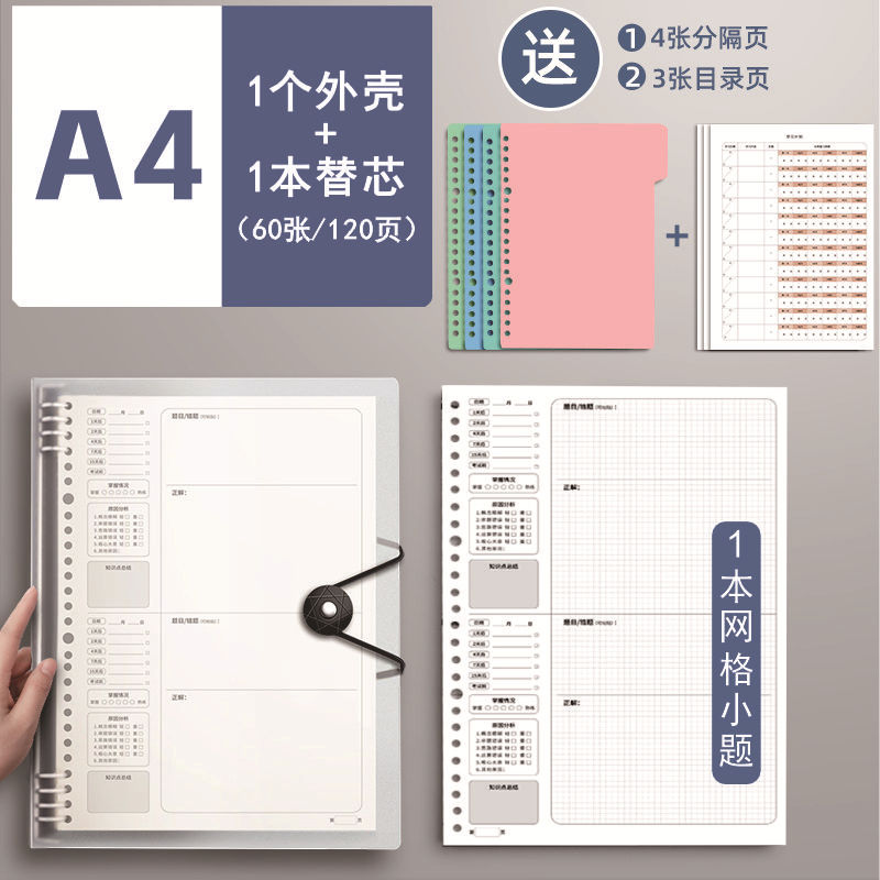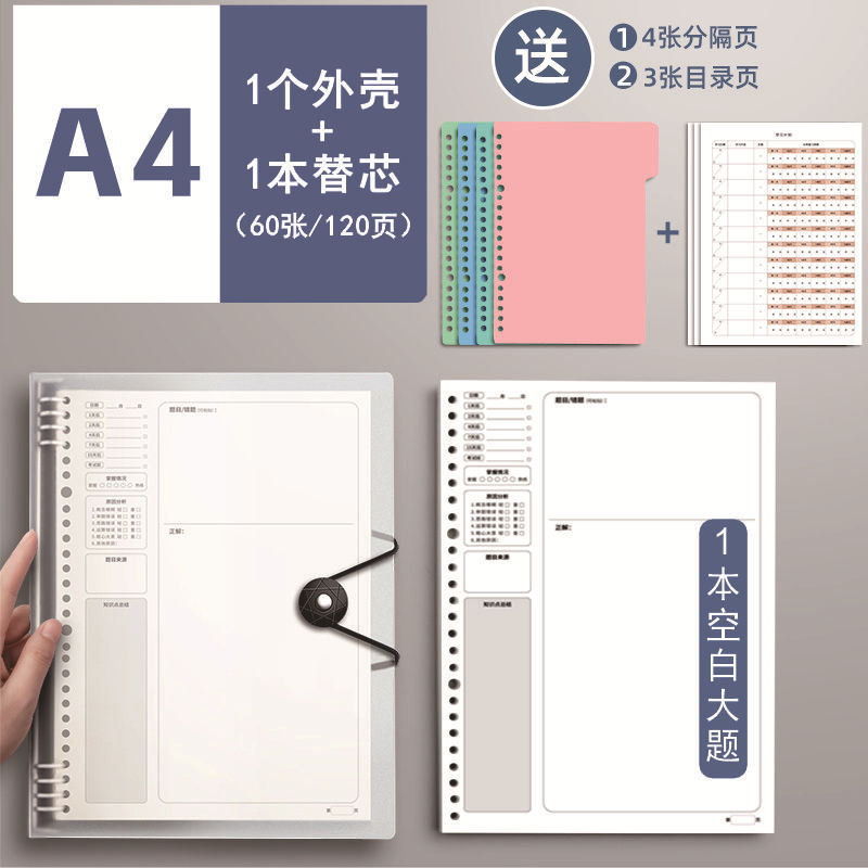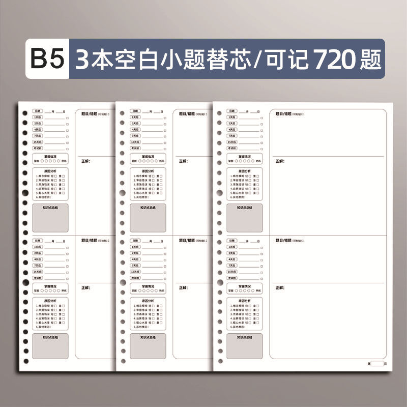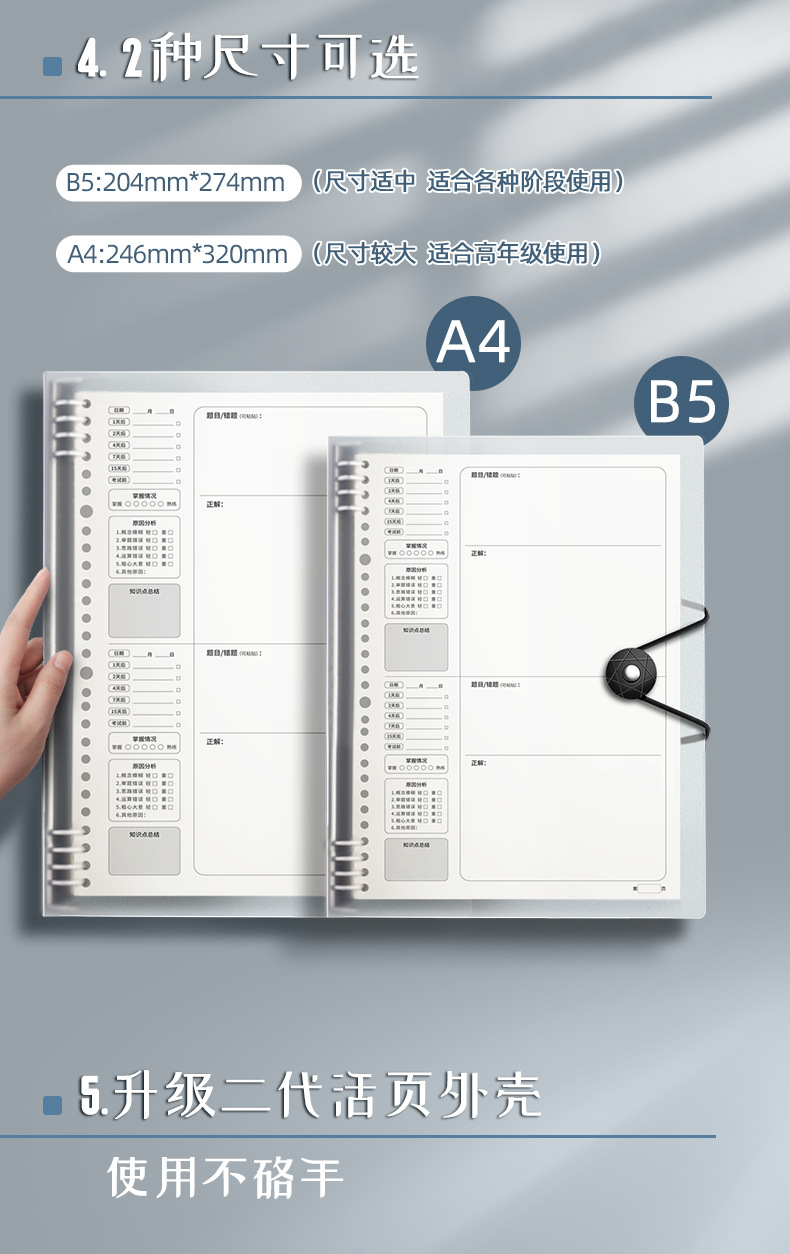 중학생 및 초등학생을위한 잘못된 주제 책 b5 느슨한 잎 탈착식 두꺼운 오류 수정 책 오류 수정 책