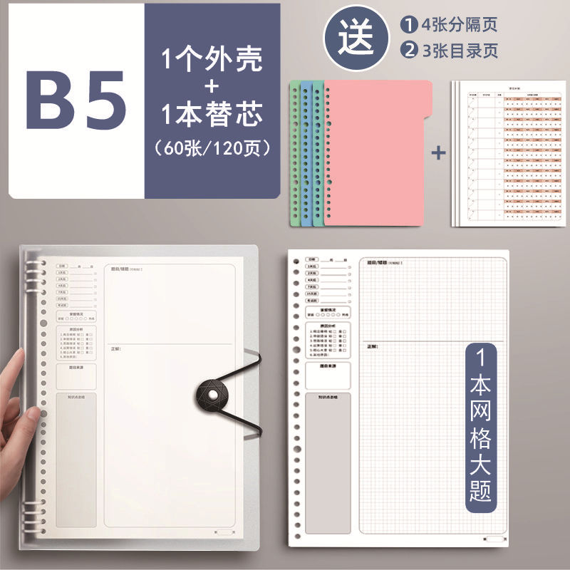 중학생 및 초등학생을위한 잘못된 주제 책 b5 느슨한 잎 탈착식 두꺼운 오류 수정 책 오류 수정 책스토어 가기