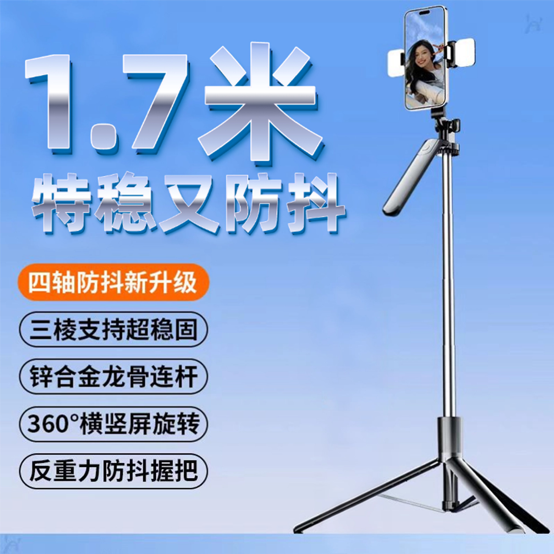 국경을 넘는 다기능 휴대폰 셀카봉 일체형 흔들림 방지 텔레스코픽 막대 1.7m 블루투스 삼각대 4/1 인터페이스