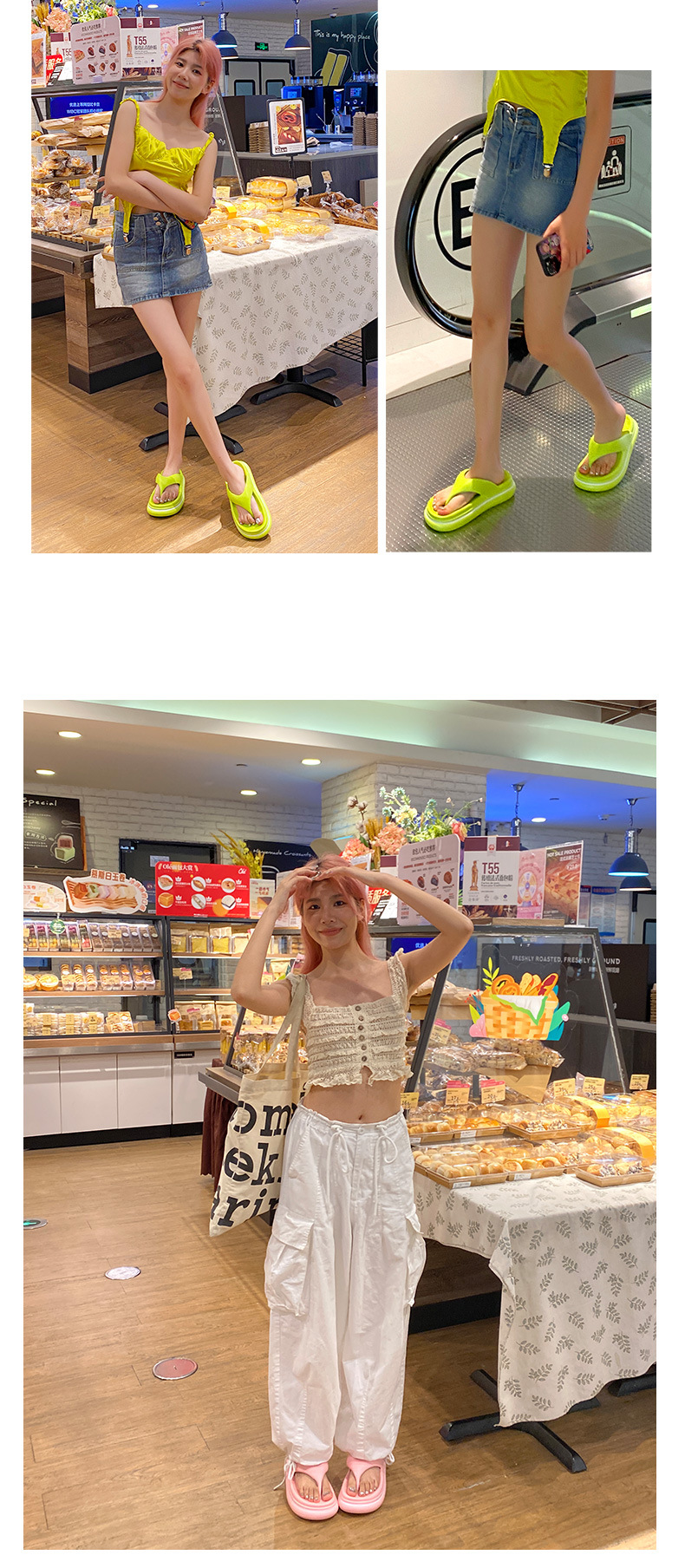 플립 플롭 여성용 여름 아우터 2024 새로운 두꺼운 밑창 스타 플립 플롭 슬리퍼 해변 미끄럼 방지 캐주얼 샌들스토어 가기