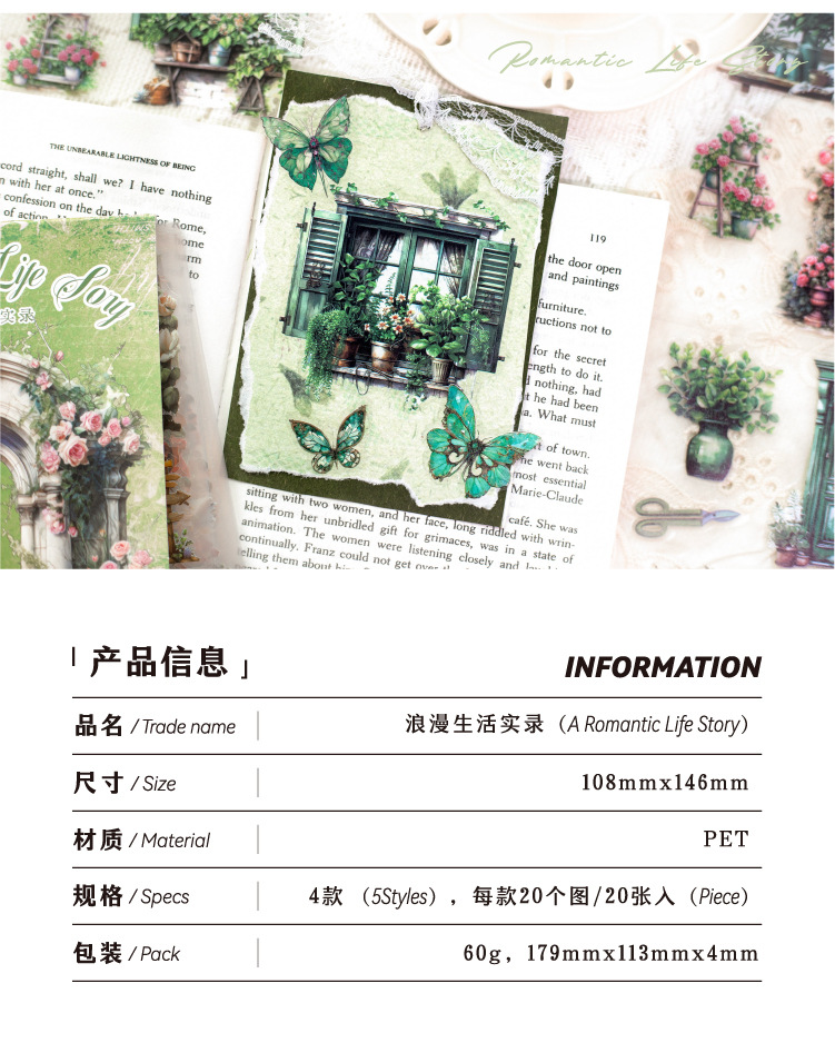 Yan Ji PET 스티커 책 낭만적 인 생활 기록 시리즈 손 계정 재료 장식 콜라주 기본 스티커 4
